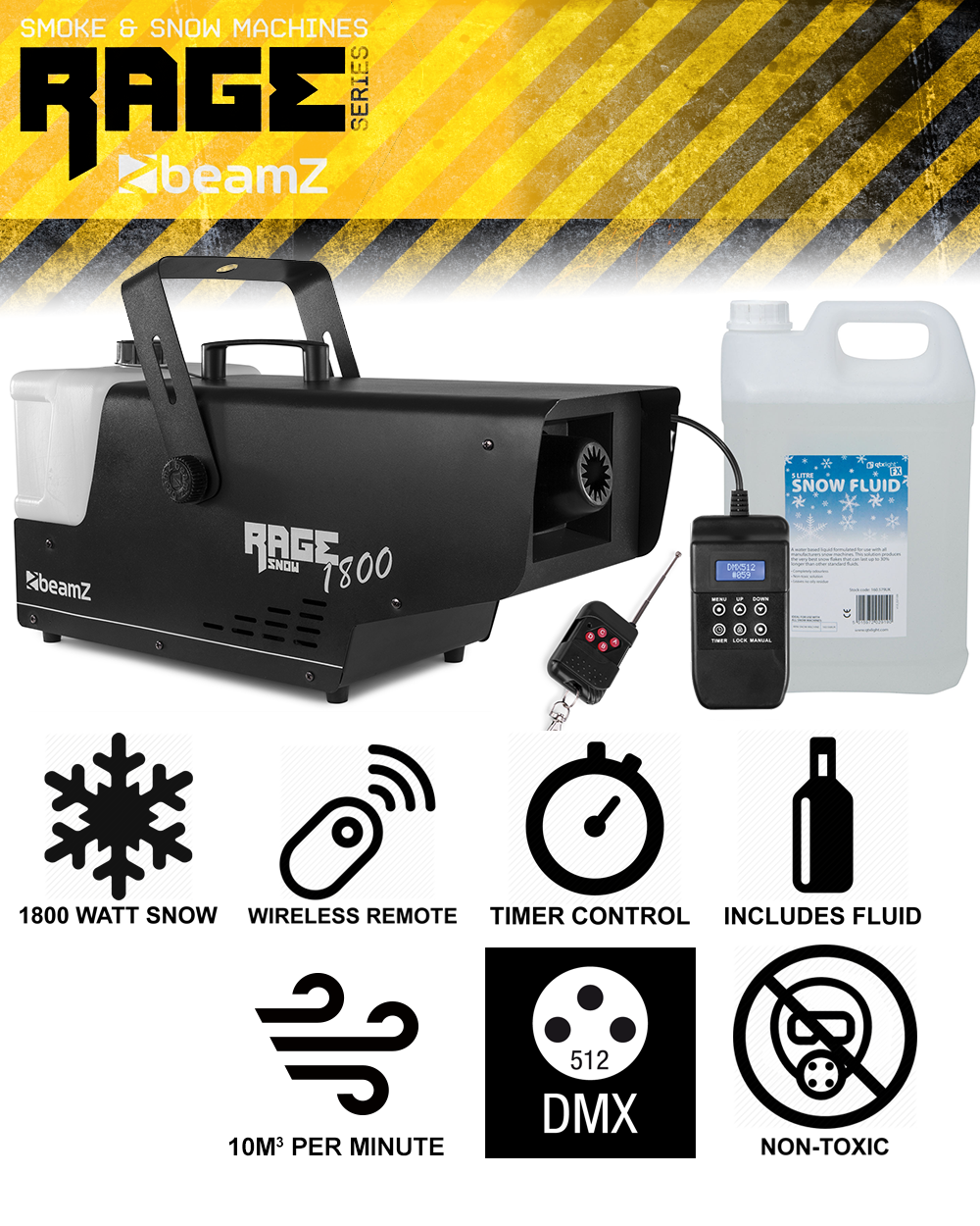 Rage 1800 Snow Machine With Wireless and Timer Controller