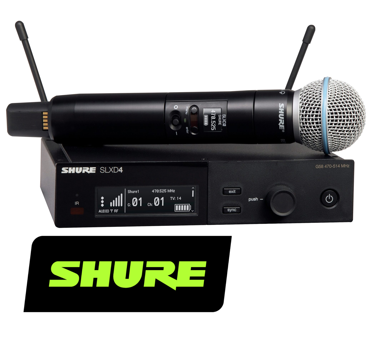 Featuring the Beta®58A Supercardioid Dynamic Microphone capsule on top of the SLXD2 handheld wireless transmitter, the SLXD24/B58 provides transparent digital audio and rock-solid RF stability for lecture halls and live performances.