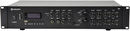 An inbuilt media player section offers playback of mp3 audio tracks from USB drive or SD card and also has a Bluetooth receiver and FM radio tuner. A rotary switch for each output zone selects the stereo playback audio from a choice of 2 rear stereo inputs, a front 3.5mm stereo input or the built-in media player. Mic inputs 1 and 2 are live to both output zones at all times. 2 pairs of speaker connections on the rear panel are via 4mm binding posts, which can drive up to 2 x 8 Ohm speakers on each of the 4 channels to deliver up to 4 x 200W. Designed to offer installers a comprehensive dual zone PA for bars, restaurants and function rooms.