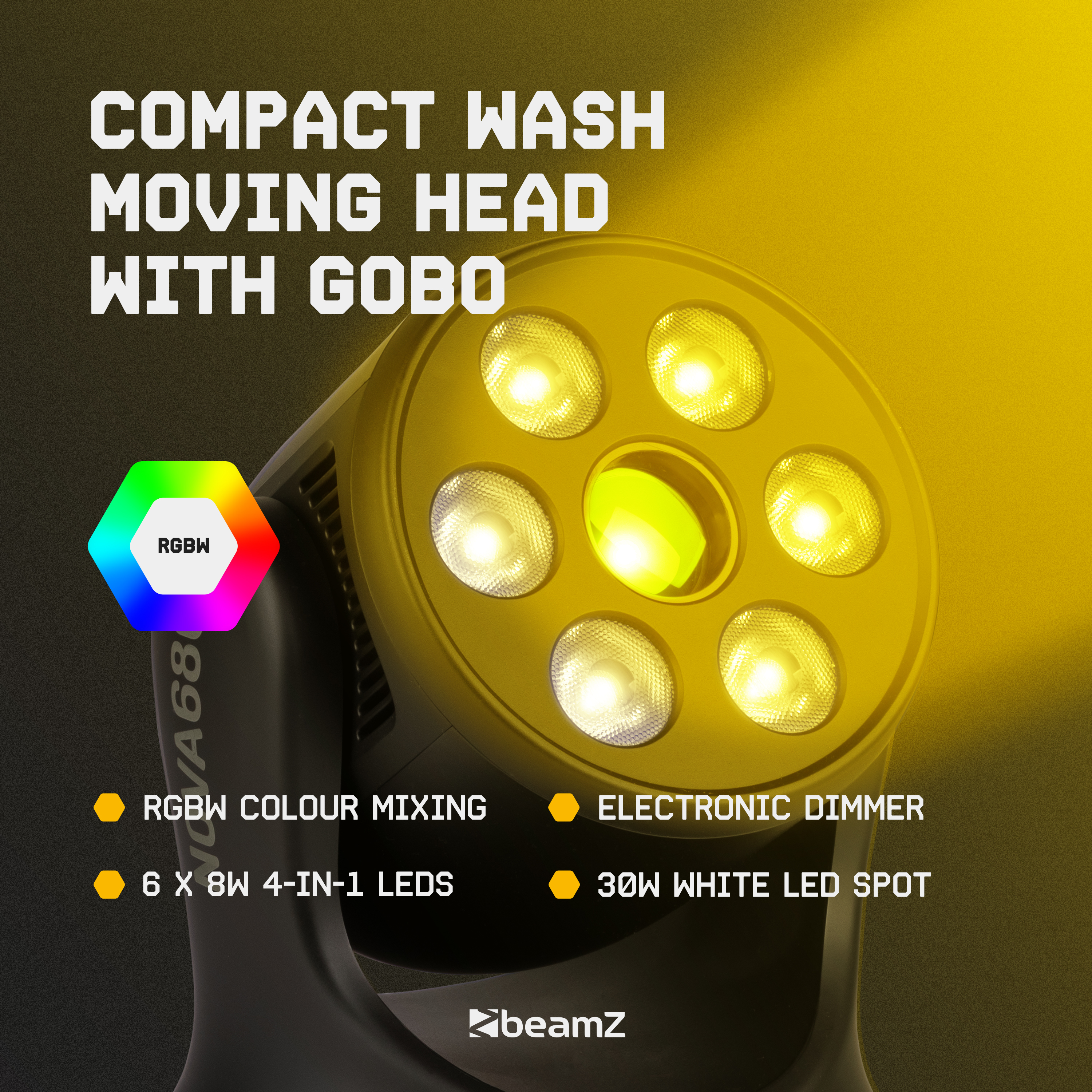 6x 8W RGBW High Power LEDs + 30W Gobo Spot