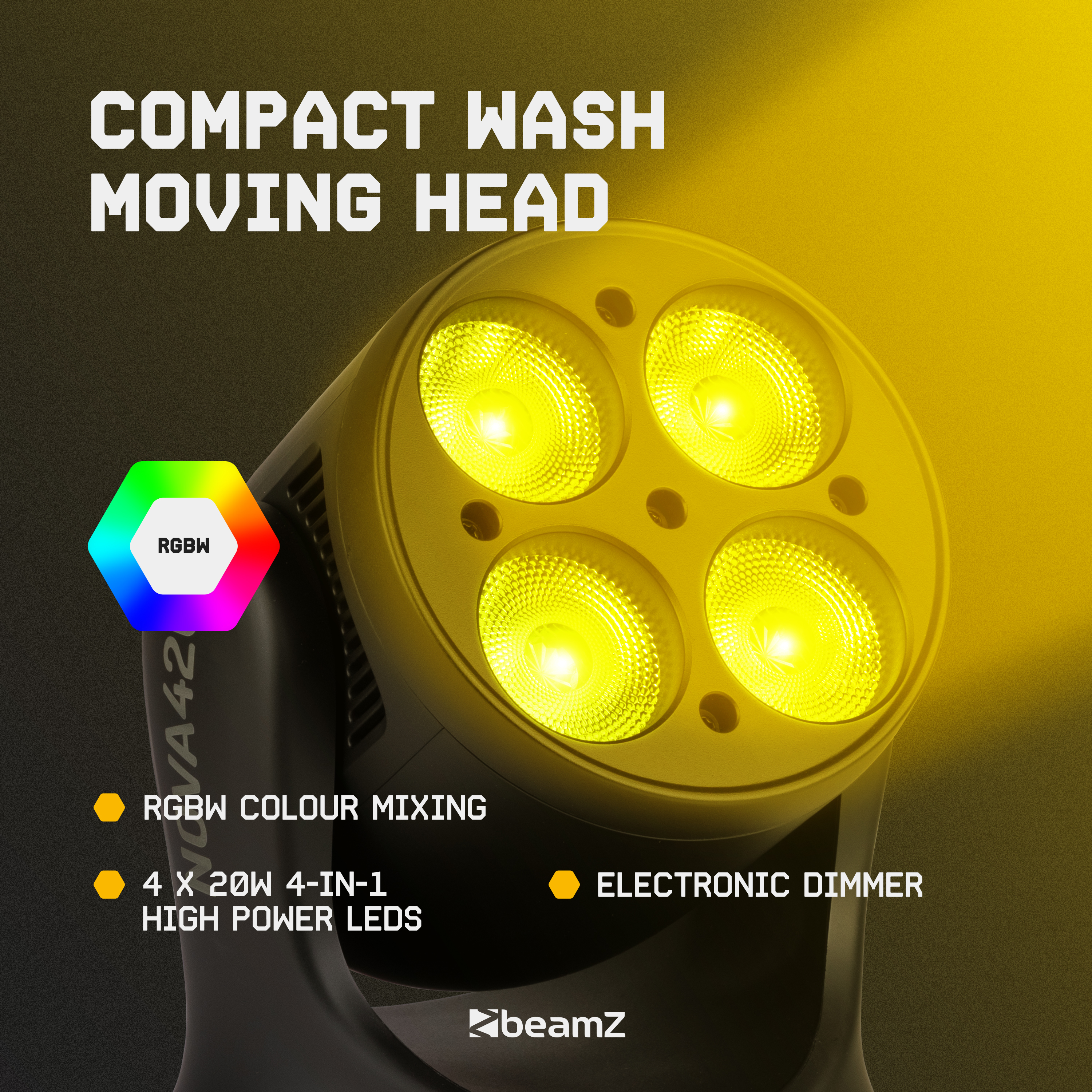 Discover the Nova Series Moving Heads – the ideal solution if you are looking for compact moving heads with high power LEDs! These stylish moving heads are crafted to deliver stunning visual effects and vibrant colour washes effortlessly. Featuring an advanced LED light source, the Nova series guarantees top-tier performance, making it ideal for lighting designers, DJs, bands, clubs, bars, and any venue where space is at a premium.