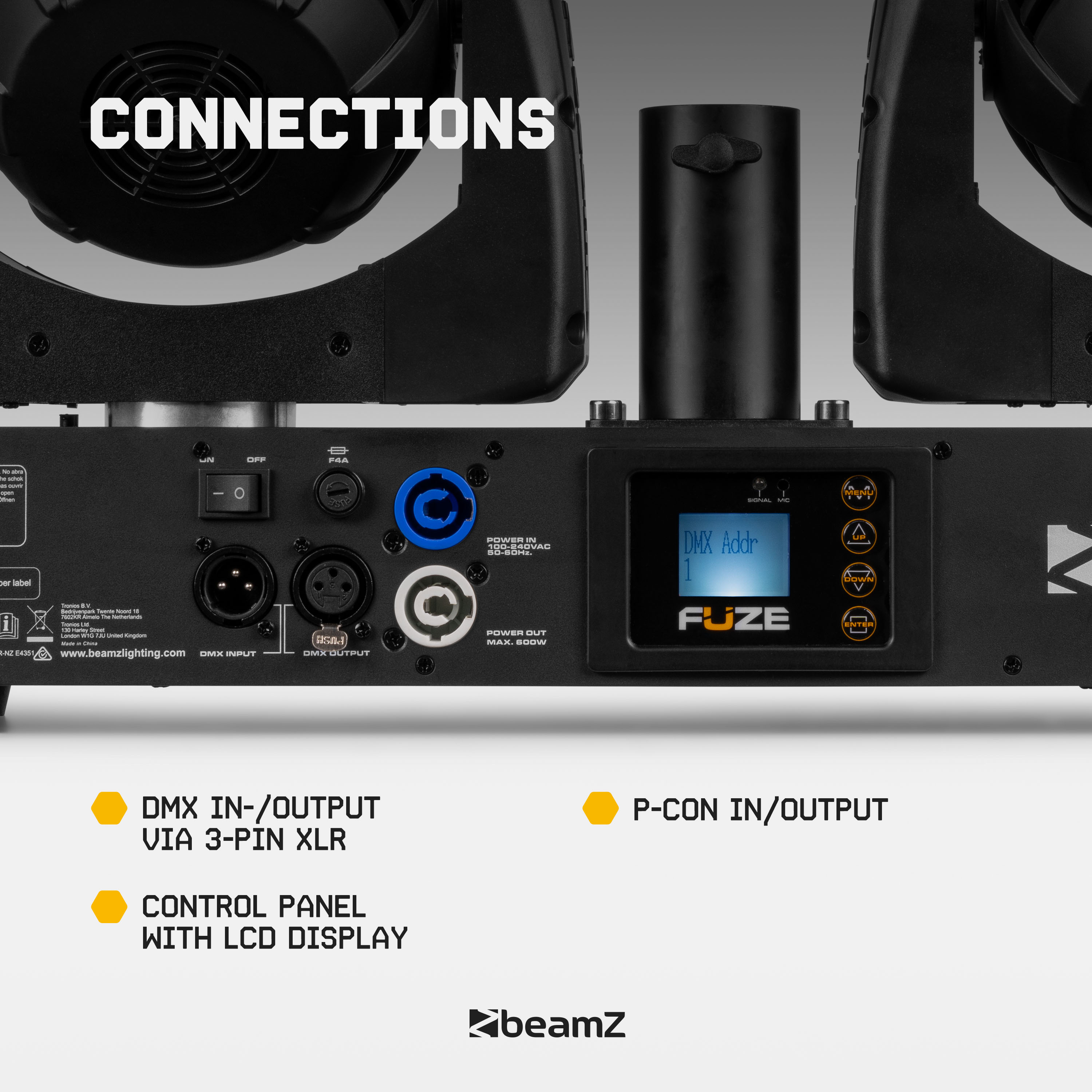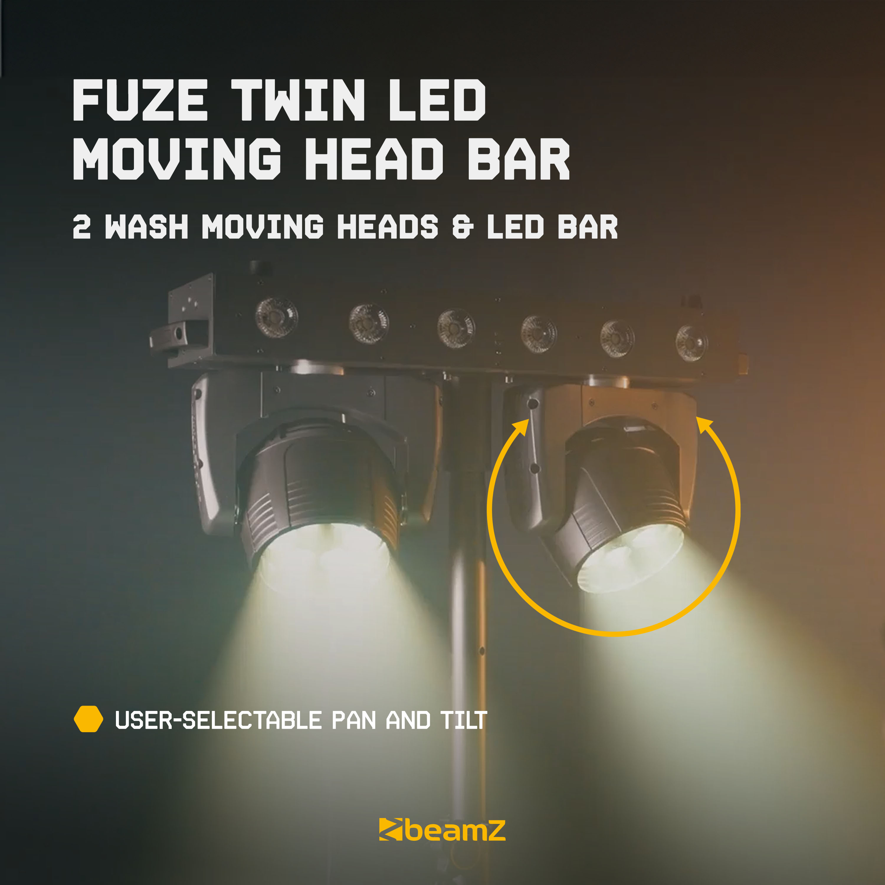 The Twin LED Moving Head Bar consists of 2 individual moving heads mounted on a sturdy metal T-bar that is also equipped with 6 high power RGBW LEDs. The two moving heads are equipped with 6x 12 RGBW LEDs and can be independently controlled via DMX, allowing you to tailor your lighting effects with unparalleled precision. In addition to DMX control, this fixture offers a range of automated features. Engage the various automatic programs to effortlessly transform your venue with captivating light patterns. For those who prefer a hands-free experience, the fixture includes a sound-to-light mode, syncing its movements and colours to the beat of the music, adding an extra layer of excitement to any event. Link multiple units together with P-Con and DMX in and outputs. The Twin LED Moving Head Bar can be mounted on a standard 35mm stand.