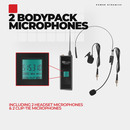 - 2 Bodypack microphones with dynamic LCD display and mute function