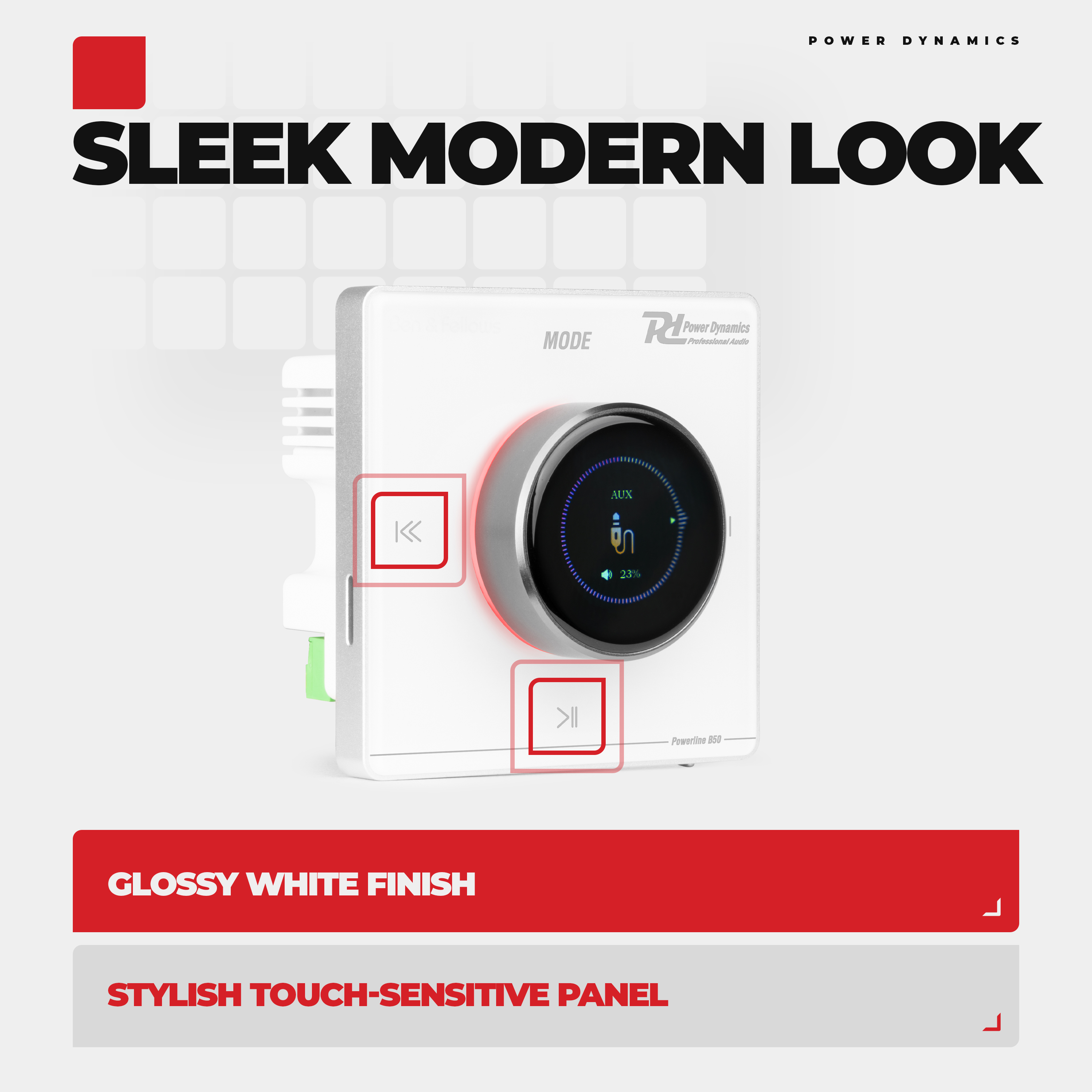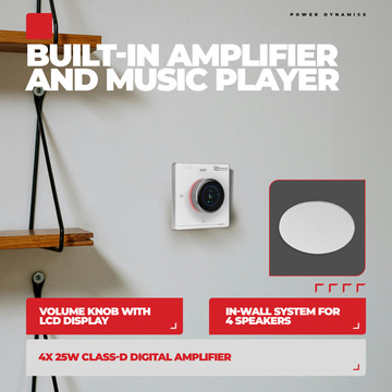 The Powerline series are in wall music systems with a built-in amplifier and a music player. The sleek elegant finish with a touch sensitive panel provides a minimalist look, so your sound is heard and not seen. All cables and connections are securely hidden within the walls out of sight with no tripping hazards. Enjoy your favourite music from many sources, such as BT Streaming, USB, microSD card, FM radio, and line level AUX. The BT streaming function allows you to connect directly to your smartphone, tablet, laptop, etc. The touchscreen and LCD gives you the ability to control all aspects of the system, simply touch and go. It’s also possible to use the included remote control.