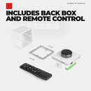 - Includes back box and remote control