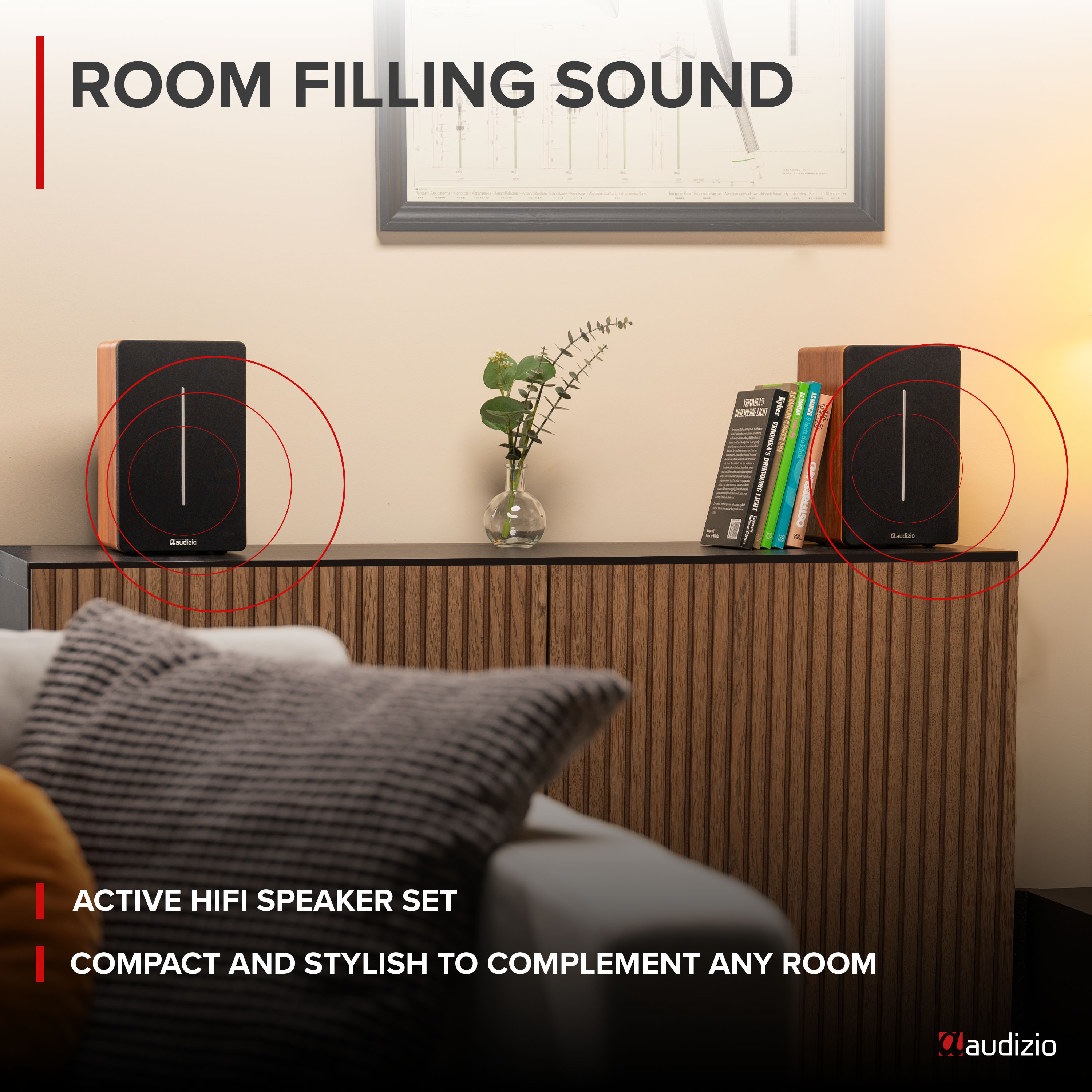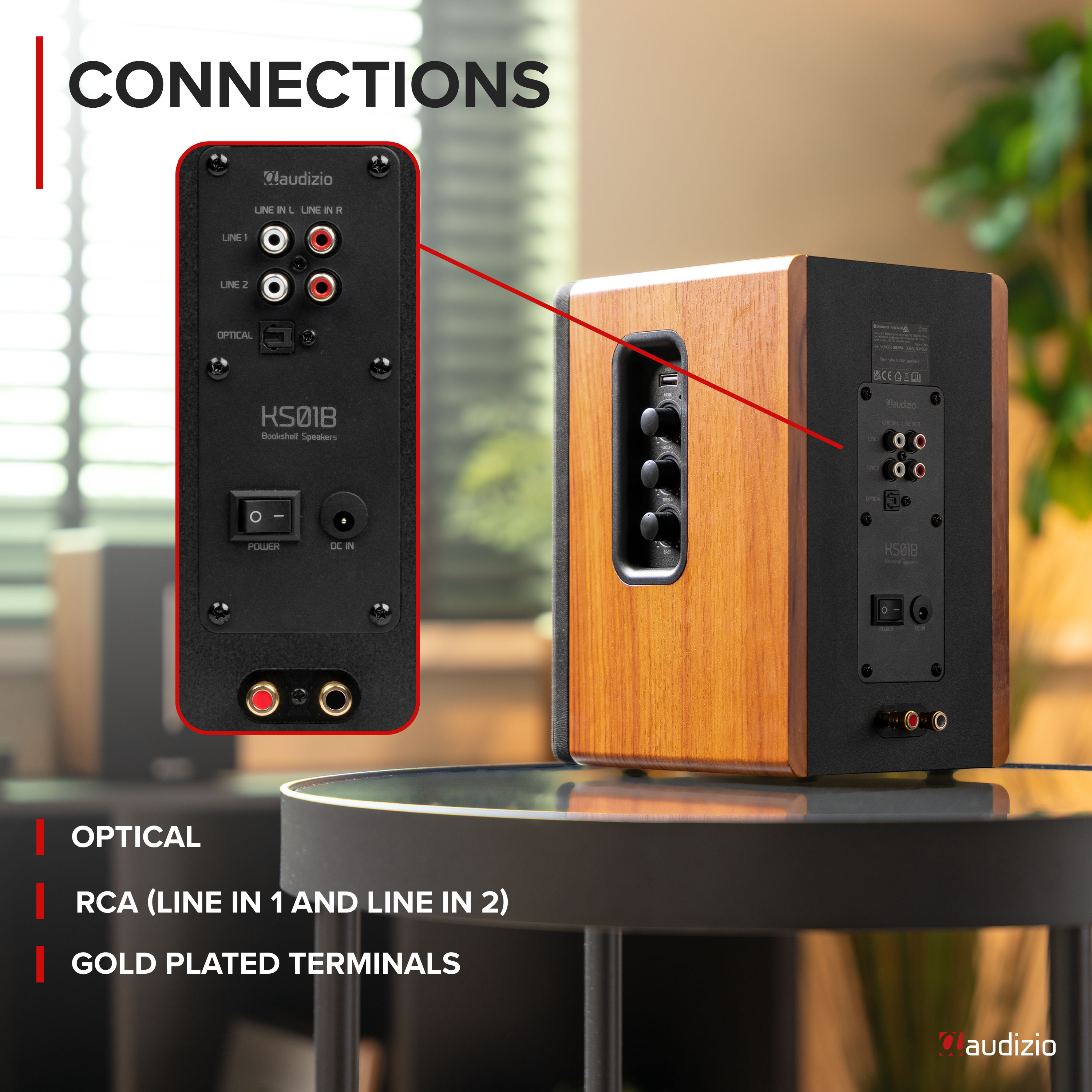 Discover sound as it’s meant to be heard with the Audizio KS series Active Bookshelf Speaker Sets. Designed for crisp, immersive sound, these sleek speakers deliver rich bass and detailed highs, perfect for music lovers, movie enthusiasts, and gamers alike. Equipped with BT connectivity, optical and RCA inputs, they seamlessly pair with your TV, PC, smartphone, or turntable. With a built-in amplifier and a modern, compact design, the KS series speakers effortlessly blend performance and style to fit any space.