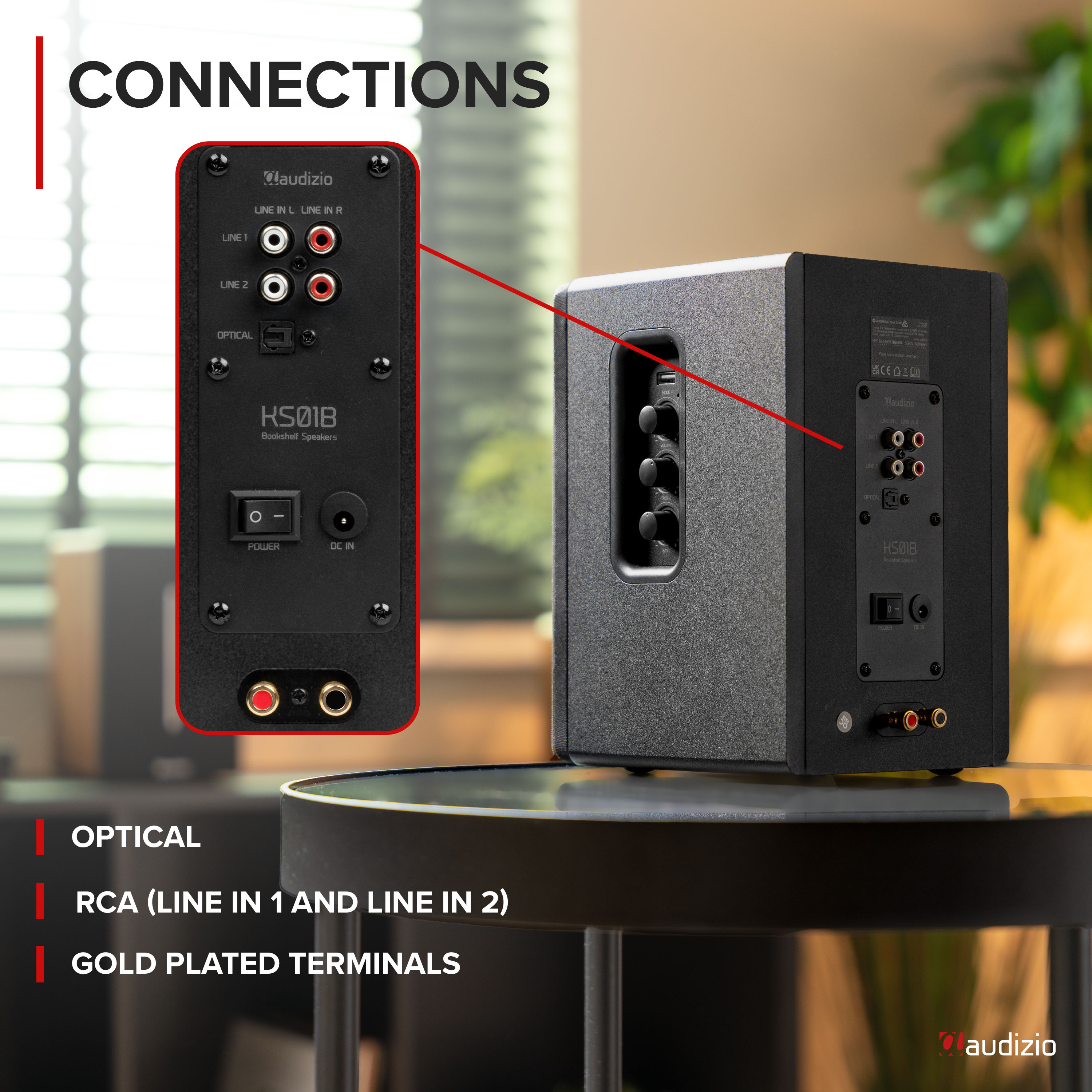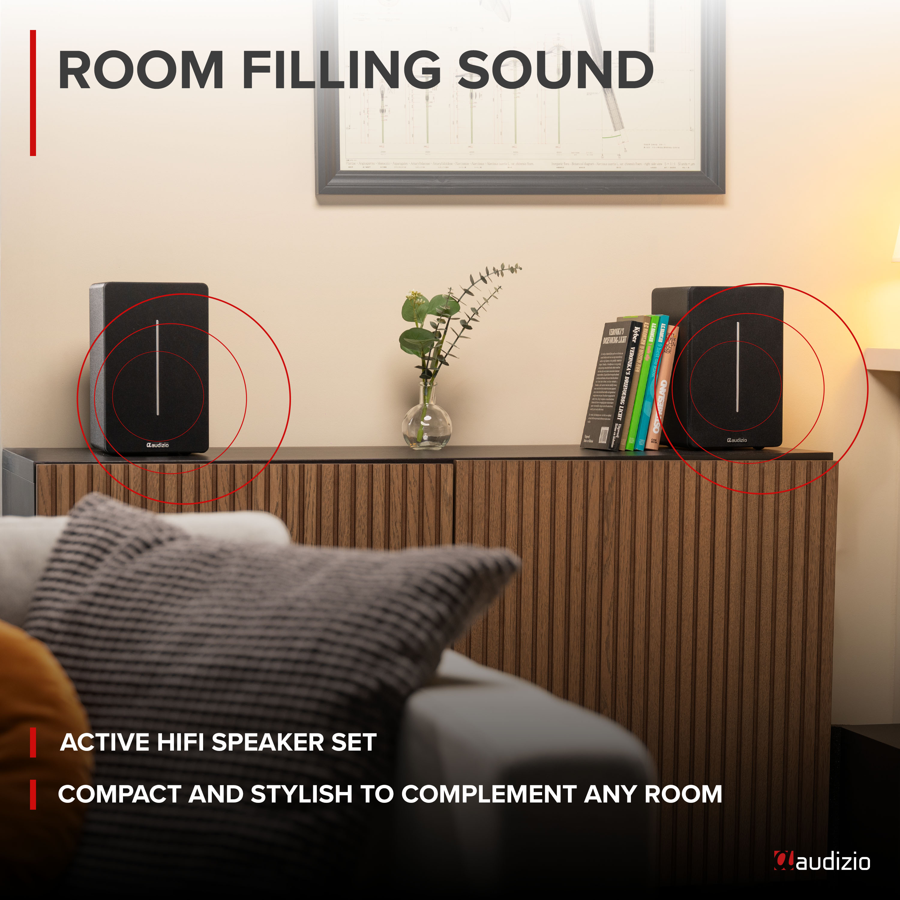 Discover sound as it’s meant to be heard with the Audizio KS series Active Bookshelf Speaker Sets. Designed for crisp, immersive sound, these sleek speakers deliver rich bass and detailed highs, perfect for music lovers, movie enthusiasts, and gamers alike. Equipped with BT connectivity, optical and RCA inputs, they seamlessly pair with your TV, PC, smartphone, or turntable. With a built-in amplifier and a modern, compact design, the KS series speakers effortlessly blend performance and style to fit any space.