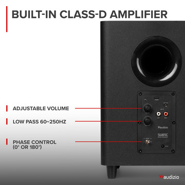 Experience deep, immersive bass with the Audizio HiFi subwoofers, designed to enhance your audio system with precision and power. Each model features a high-performance built-in amplifier and a long-throw injection-moulded woofer, delivering rich, low-frequency sound with clarity and impact.