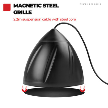 The PDS50 pendant speakers are hanging speakers ideal for use in PA background music systems. These speakers are equipped with a 6.5 inch polypropylene woofer and a 1 inch mylar dome tweeter for perfect speech reproduction and good music performance. The combination of 8Ohm and 100V makes these pendant speakers ideal for use in offices, shops, showrooms, restaurants, etc.