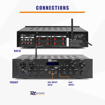 With its built-in Bluetooth receiver, you can stream wirelessly from your smartphone, tablet, or laptop. For wired connections, the PV240BT offers AUX and RCA inputs, ideal for CD/DVD players and TVs. The amplifier also includes: