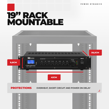 With this complete Power Dynamics 100V broadcast and music system you get everything you need to provide a warehouse, company hall, shop, etc. with a music and public address installation. The installation comes with 12 speakers, a powerful 120W amplifier, a table microphone and all the necessary cables to get started immediately after receipt. The 12 speakers are equipped with a handy bracket so that they can easily be hung on a wall or ceiling.