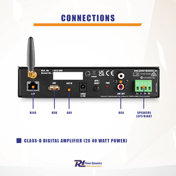4 x Power Dynamics WT240A Stereo Amplifier with Bluetooth, Wi-Fi and More - 80W