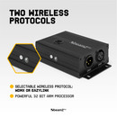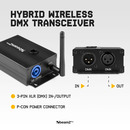 The WTR10 Hybrid wireless DMX transceiver guarantees a reliable wireless DMX lighting setup and provides a cable-free environment. Operating seamlessly on the 2.4GHz frequency band, the WTR10 eliminates the need for permits and takes convenience to the next level. This compact transceiver is fully compatible with the WDMX and EazyLink protocols and ensures fast signal transmission due to its 32-bit ARM internal processor. Equipped with XLR input and output ports, the WTR10 integrates seamlessly into your existing installation and is easy to truss mount.