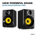 - Includes a pair of 5-inch 140W active studio monitors with a 2-way speaker system