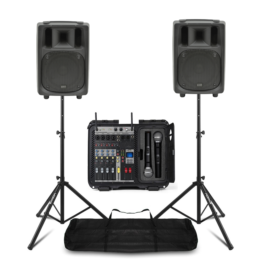 - 1 x Vonyx ELSM210 6-channel Powered PA Mixer with UHF Wireless Microphones