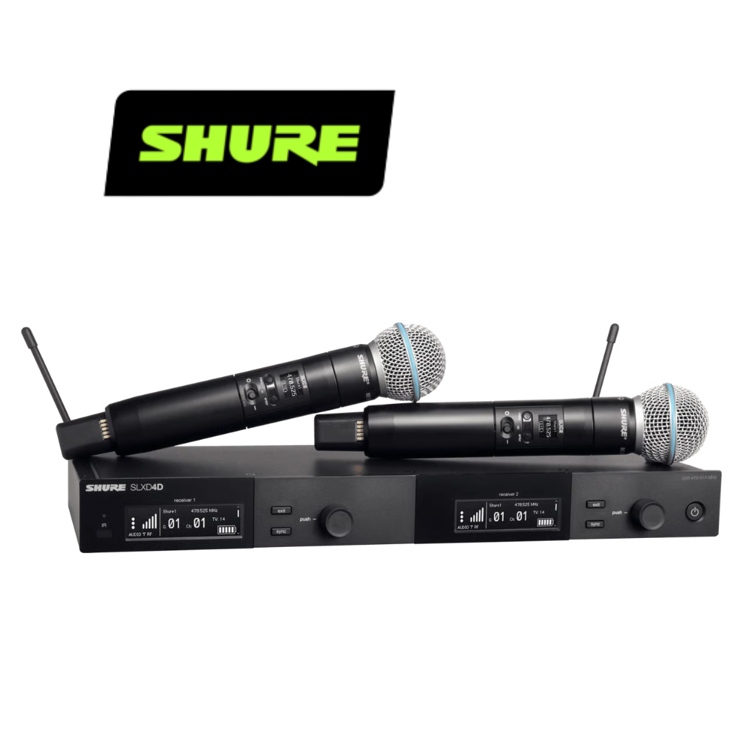 Featuring two Beta® 58 Supercardioid Dynamic Microphone capsules on SLXD2 handheld wireless transmitters, the SLXD24D/B58 provides transparent digital audio and rock-solid RF stability for lecture halls and live performances.