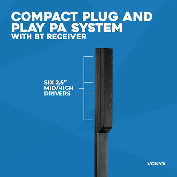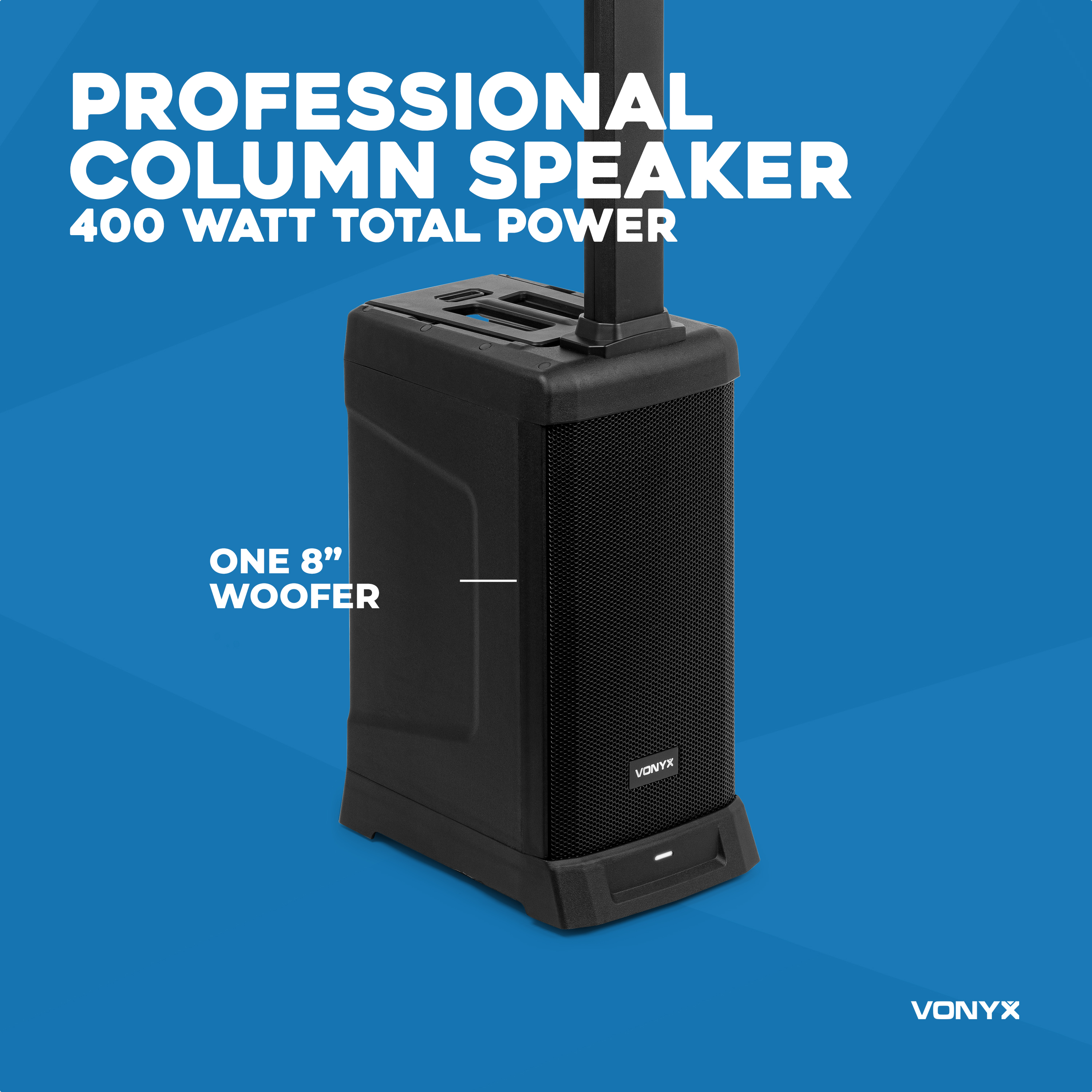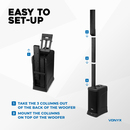 With 400W max to each column, this active DJ speaker package offers plenty of output to fill a room effectively, delivering both volume and clarity. The column line array speaker configuration distributes sound evenly, allowing for excellent coverage across the venue. The 2.5-inch array speakers deliver great clarity to music and live vocals, reinforced with a custom 8-inch subwoofer with large magnet and voice coil for exceptional low-end and midrange response.