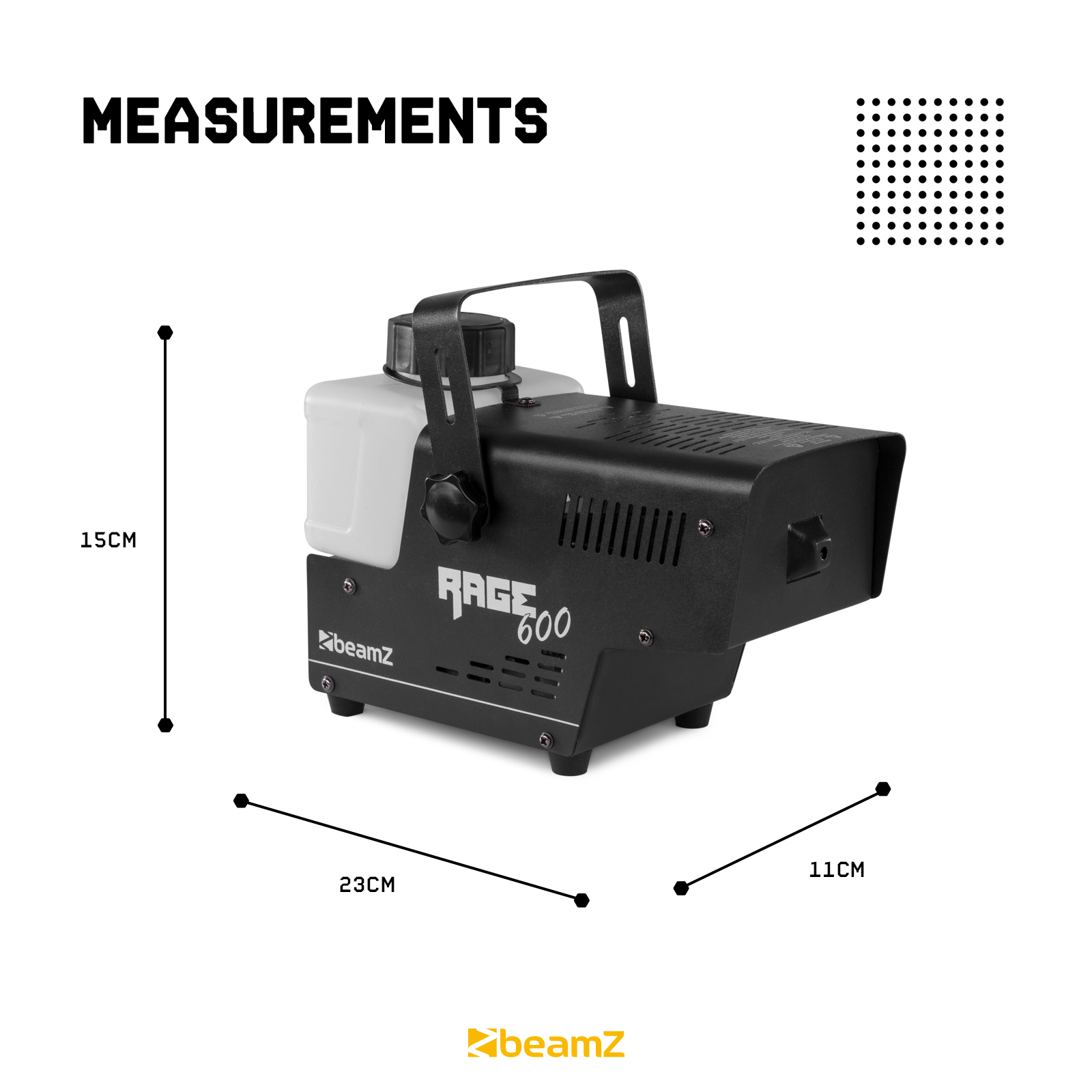 With this complete kit, you can get started right away. It includes the 600W BeamZ RAGE600I fog machine and a 5-litre canister of smoke fluid. After receiving this kit, you can fill the RAGE600I with smoke fluid right away, so it's ready to use in no time.
