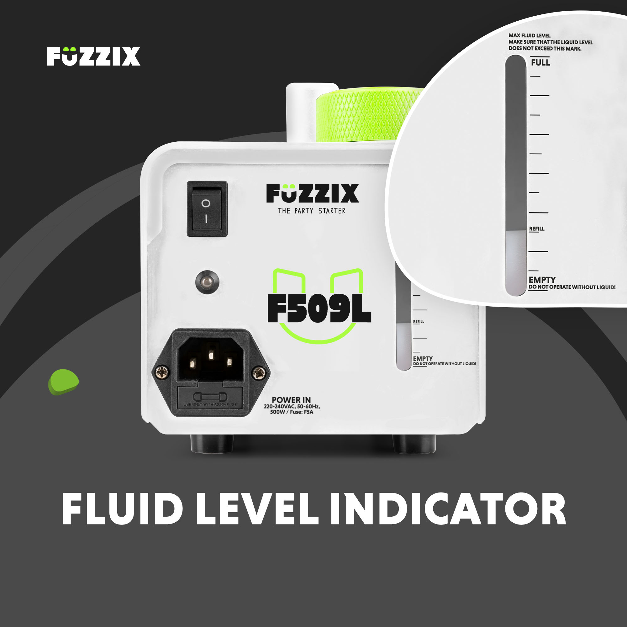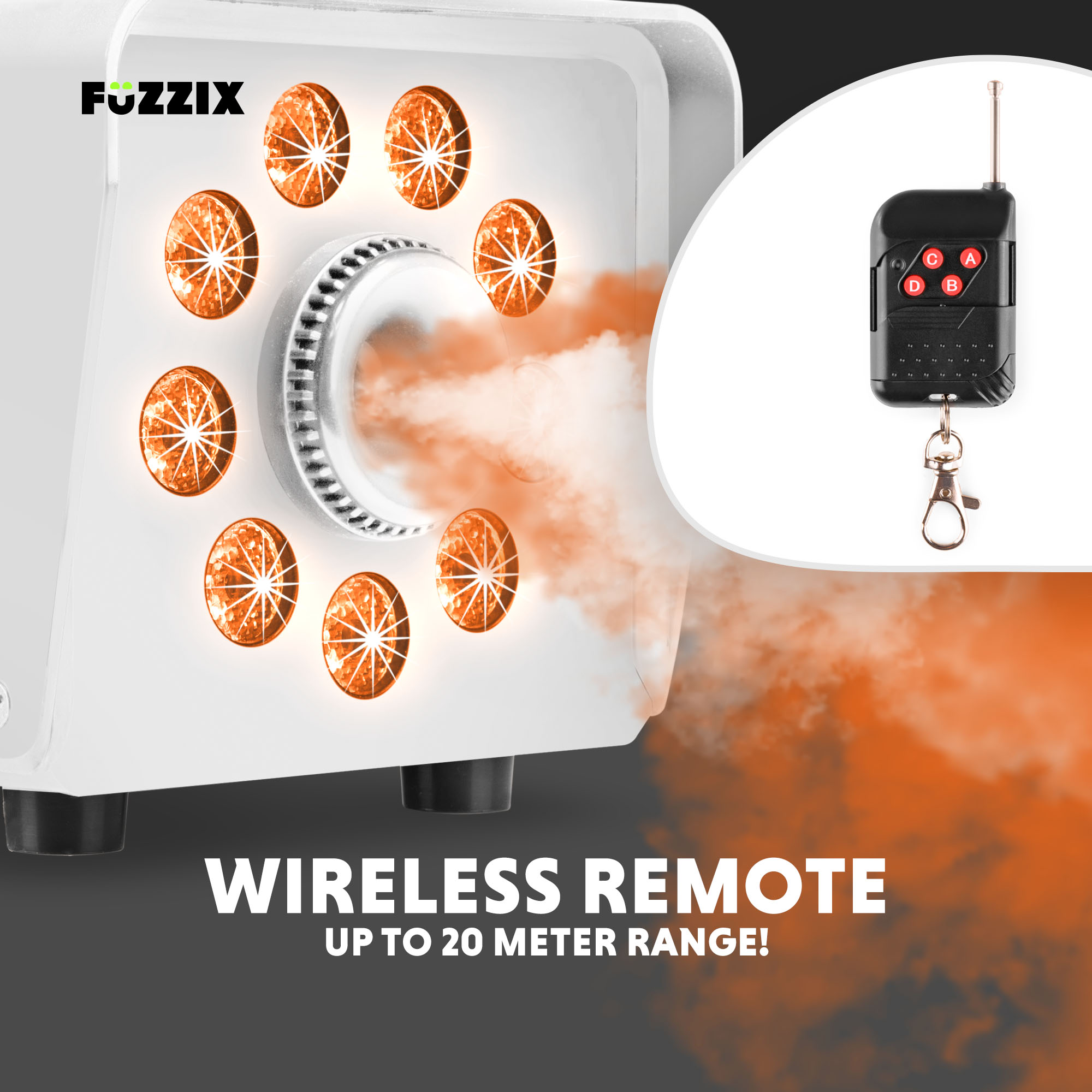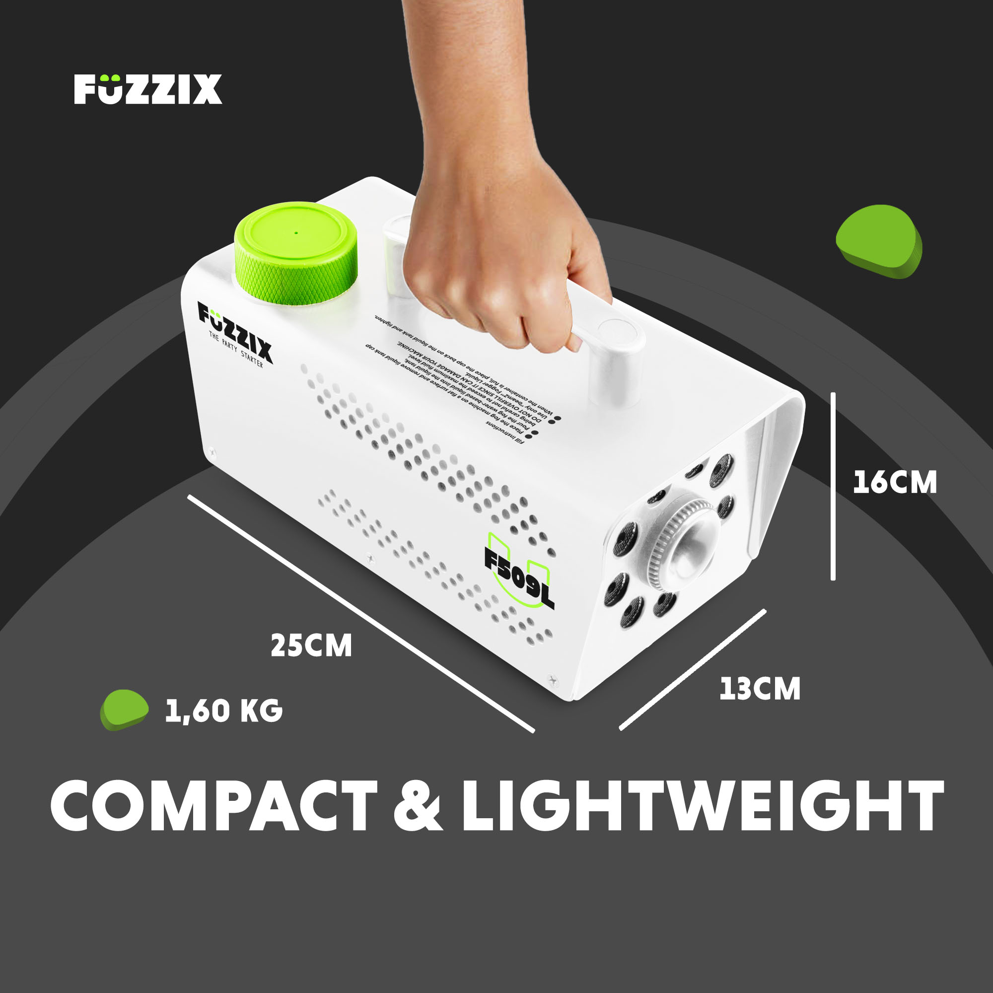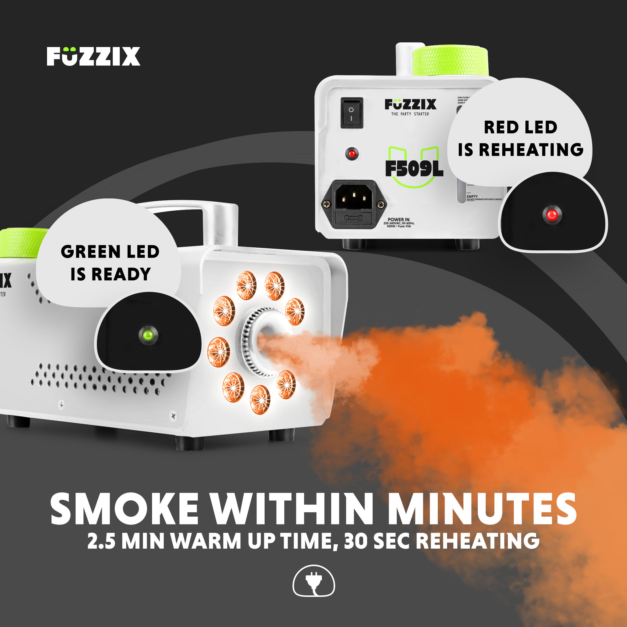 A fog machine is essential for a memorable party. The Fuzzix F509LW is designed to meet all your expectations! This machine has a 500W capacity and fills a 50m³ room with smoke every minute. Within 2.5 minutes, the machine heats up and is ready to blow dense clouds of smoke. A unique feature are the integrated LEDs. With 9 RGB LEDs, this fog machine brings your smoke clouds to life. Easily control the colors and timing of the smoke plumes with the push of a button on the wireless remote. The Fuzzix F509LW has a 250ml fluid tank, so you'll rarely need to refill it. It also has a short reheat time of only 30 seconds. Perfect for themed parties like Halloween or Carnival, or for a standard house party.