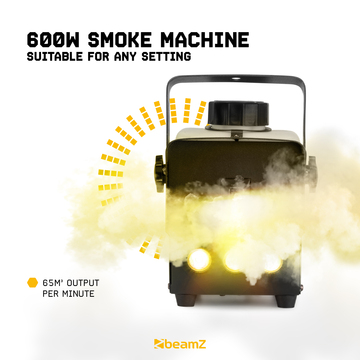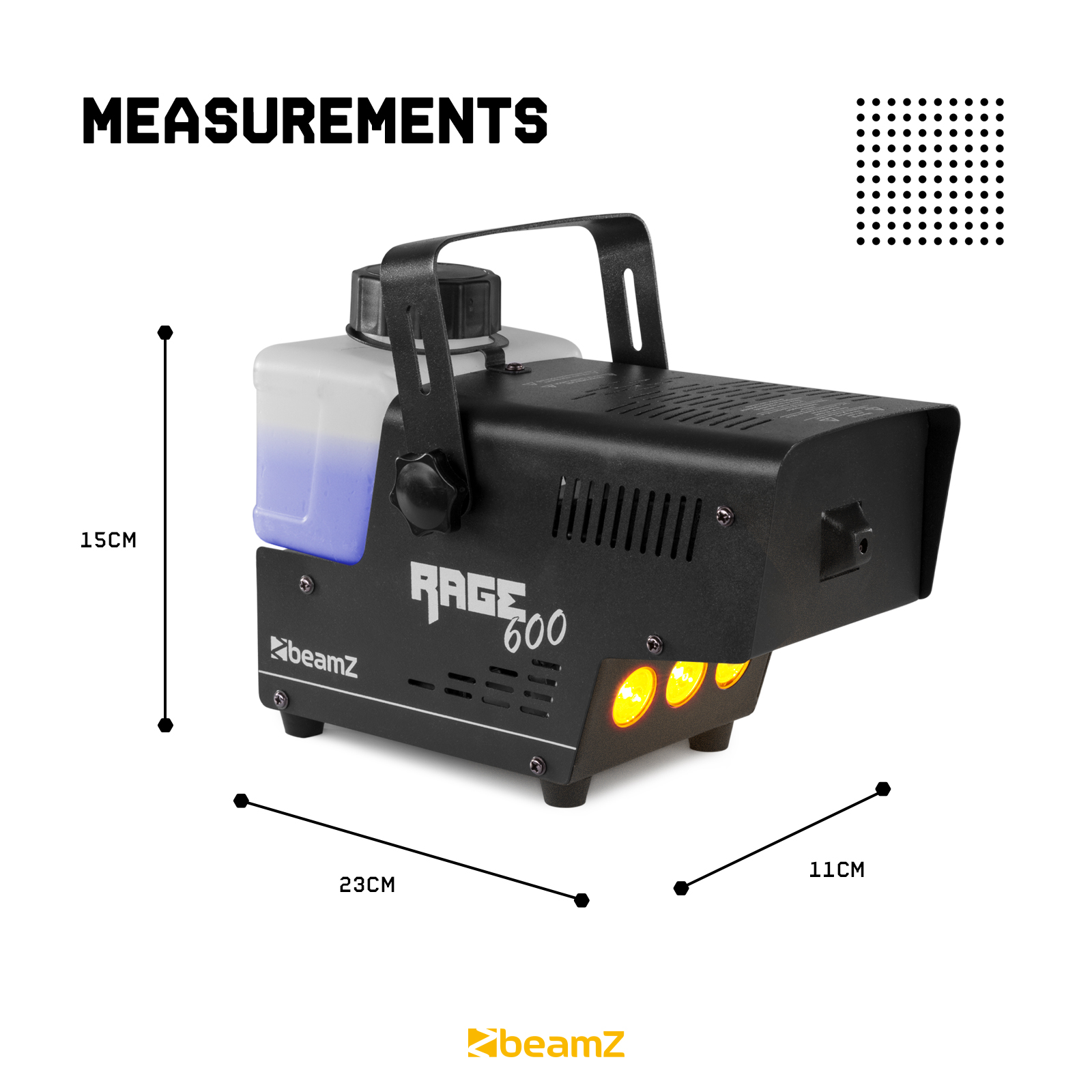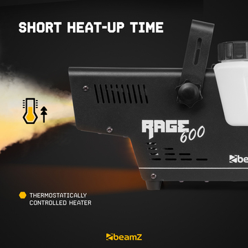 Once you receive it, you can get started right away with the BeamZ RAGE600LED smoke machine. The machine comes with 5 liters of smoke fluid, so you can use it right away. The RAGE600LED features three LEDs at the nozzle, which instantly turn the smoke orange. This orange color creates a flame-like effect, giving it a stunning effect. It also creates a mist/fog in the room, giving your light show an extra boost. The BeamZ600LED will give your DJ or drive-in show a real boost! Of course, the RAGE600LED is also ideal for themed parties like Halloween.