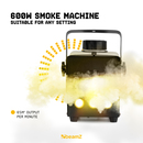 Specifications Technical specifications Assets 600 Watt Output volume per minute 65m³ Type of smoke machine Smoke machine Output direction Horizontal Heat-up time in minutes 2 Reheat time in minutes 0.50 Additional options Mounting bracket Built-in light LED Light source Single color LED Number of LEDs 3 LEDs To colour Amber Mode Manually Physical specifications Tank capacity 500 ml Length 23 cm Width 11 cm Height 15 cm Weight in kg 6.55 Connections DMX No Including remote control Yes Remote control type Wired, Wireless Power consumption 2A Plug type IEC C13 Power Lead 3c General properties Accessories Remote control, Mounting bracket, Power cord Including fluid Yes Including fluid Smoke fluid Package contents 5 litreVideos