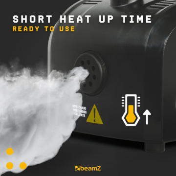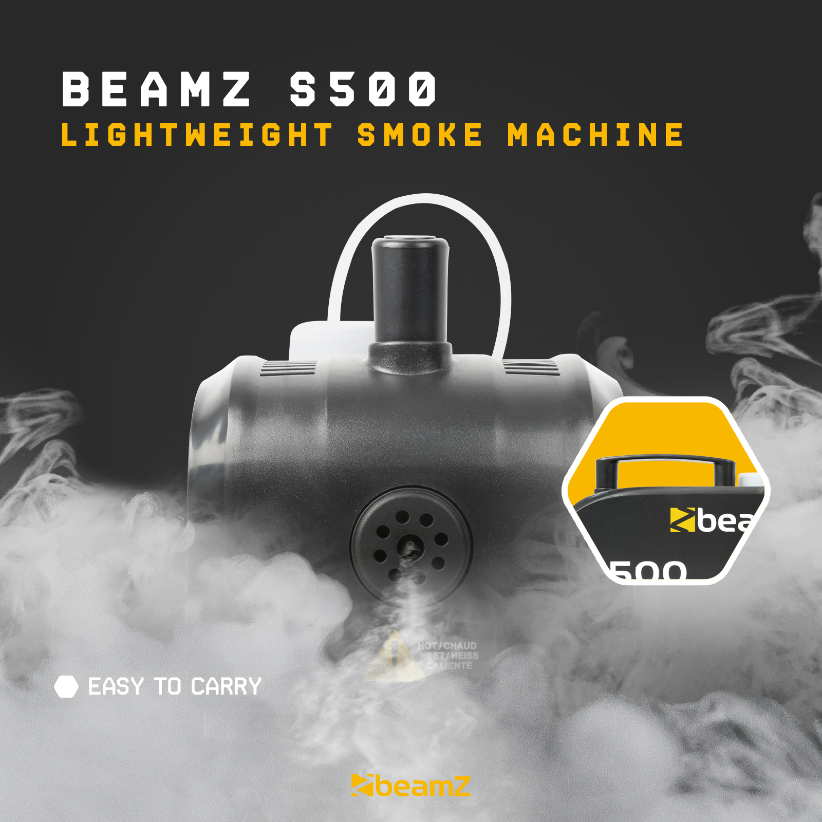 The compact Beamz S500 Fog Machine transforms event spaces into vibrant dance floors after a short heat up time with a smoke volume of 50m³ per minute.