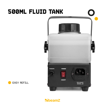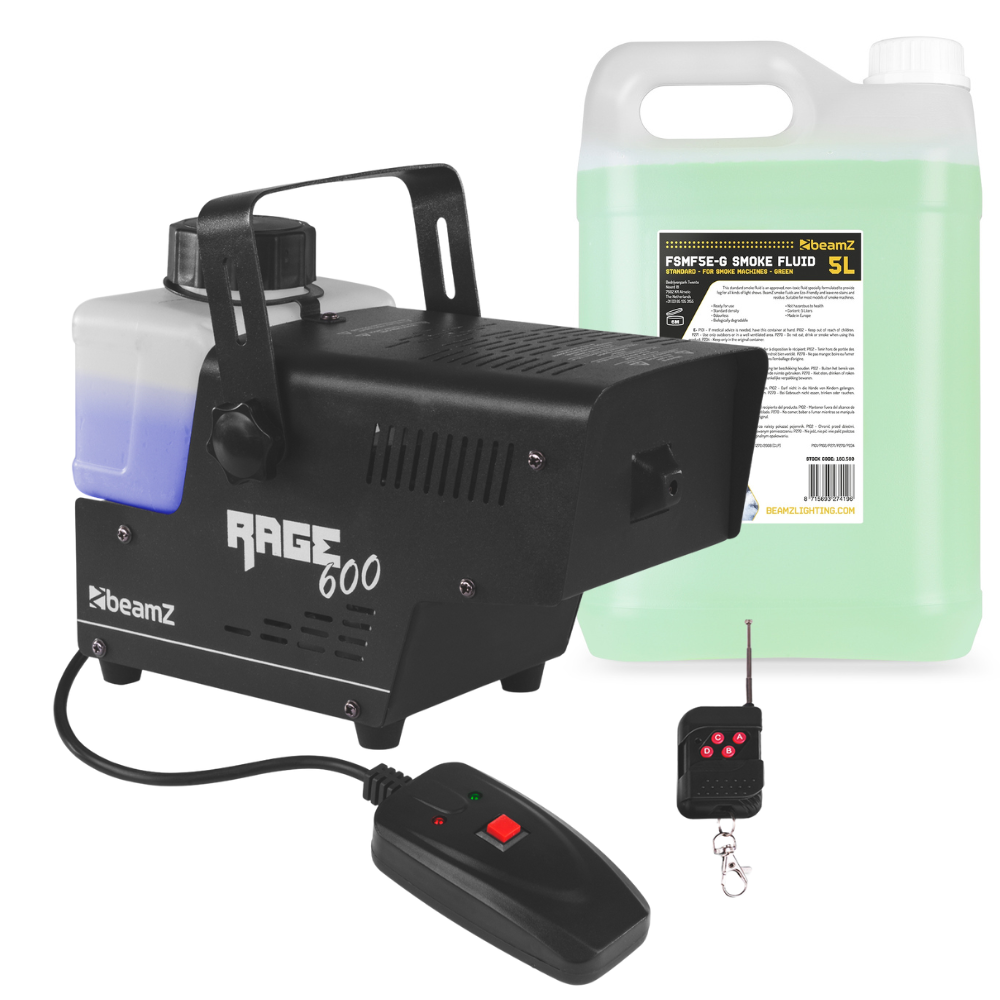 With this complete set, consisting of the BeamZ RAGE600 fog machine and a 5-litr fuel canister, you're ready to go. The RAGE600 fog machine is shipped without fog fluid, and this set immediately fills that gap. The included fog fluid can be poured directly into the tank upon receipt, so the fog machine is ready to use in no time.