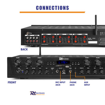 1x Power Dynamics PV260BT 6-Zone Multi-Room Amplifier – 6x 100W with Bluetooth, FM, USB/SD, Mic Inputs