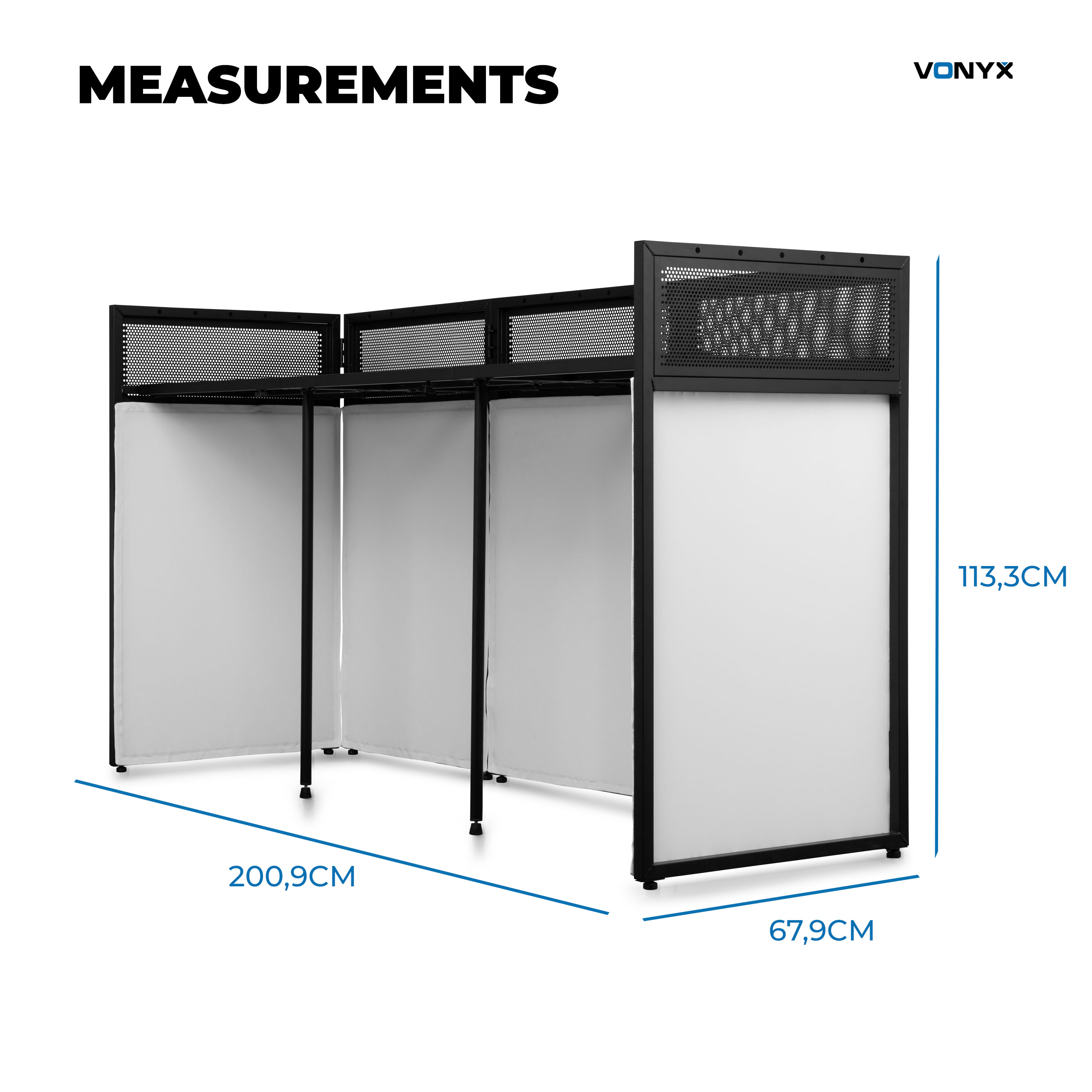 - 2-Meter wide foldable DJ-booth with perforated DJ-desk