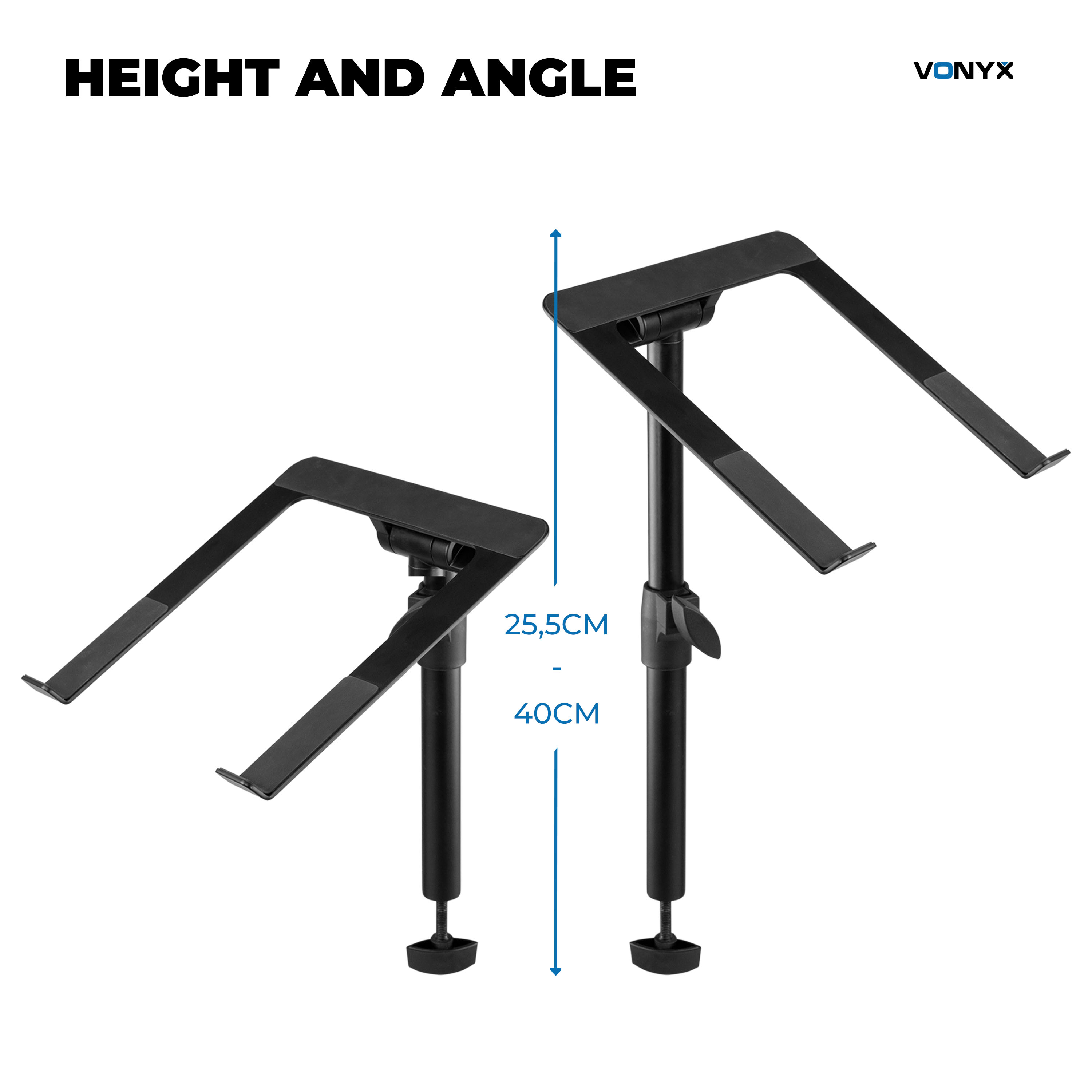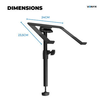 The DBLH1 is a practical laptop holder specifically designed for use with most Vonyx DJ booths, offering a stable and ergonomic solution for DJs who want to keep their laptop (or laptops) within easy reach whilst performing. This universal holder can be attached at various positions on the booth frame.