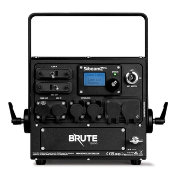 The Brute 12000 has a guaranteed output power of 12W and provides analogue modulation, ensuring smoother colour fading and a much broader colour spectrum. Combining this high power with its precision 35K graphics scanners, the laser delivers outstanding accuracy and beam quality, making it highly suitable for demanding professional applications. The system can be controlled over ILDA and DMX or run stand-alone in auto or sound activated mode. With its IP65-rated housing, the Brute 12000 is fully protected against dust and water, making it ideal for both indoor and outdoor installations.
