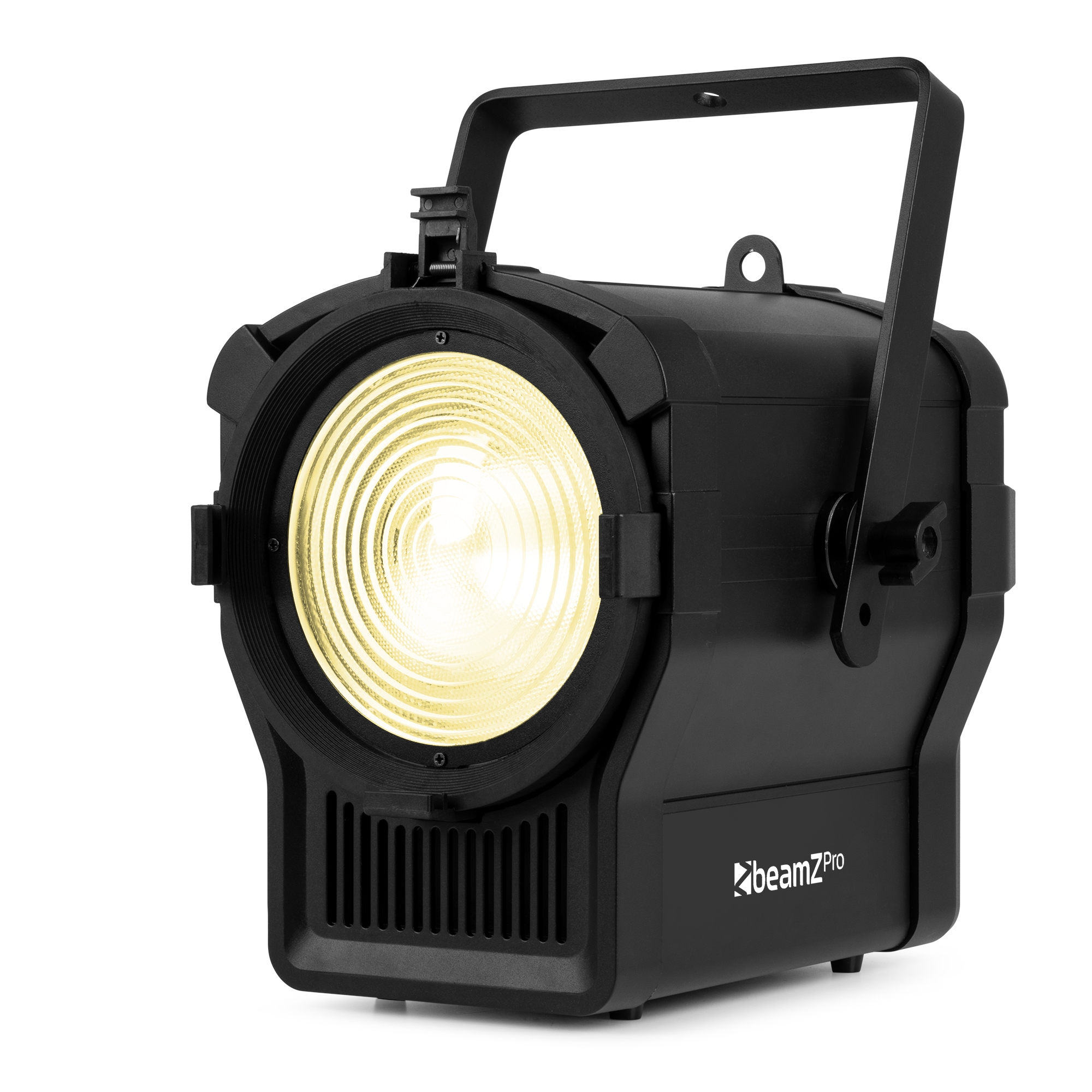 The BeamZ BTM250WW Fresnel Zoom uses a high power single source LED engine to provide a smooth and even field of warm white light, providing a modern replacement for traditional fresnels. The BTM250WW is equipped with high-quality optics, a motorized 15-55 degree zoom function and is both dimmable and able to be operated as a strobe up to 25 flashes per second. Ideal for use in theatres, studios, museums, exhibitions or any stage setting that requires smooth warm white output from an energy saving fixture with exceptionally long life. Features Powerconnector in&out and DMX controllability.