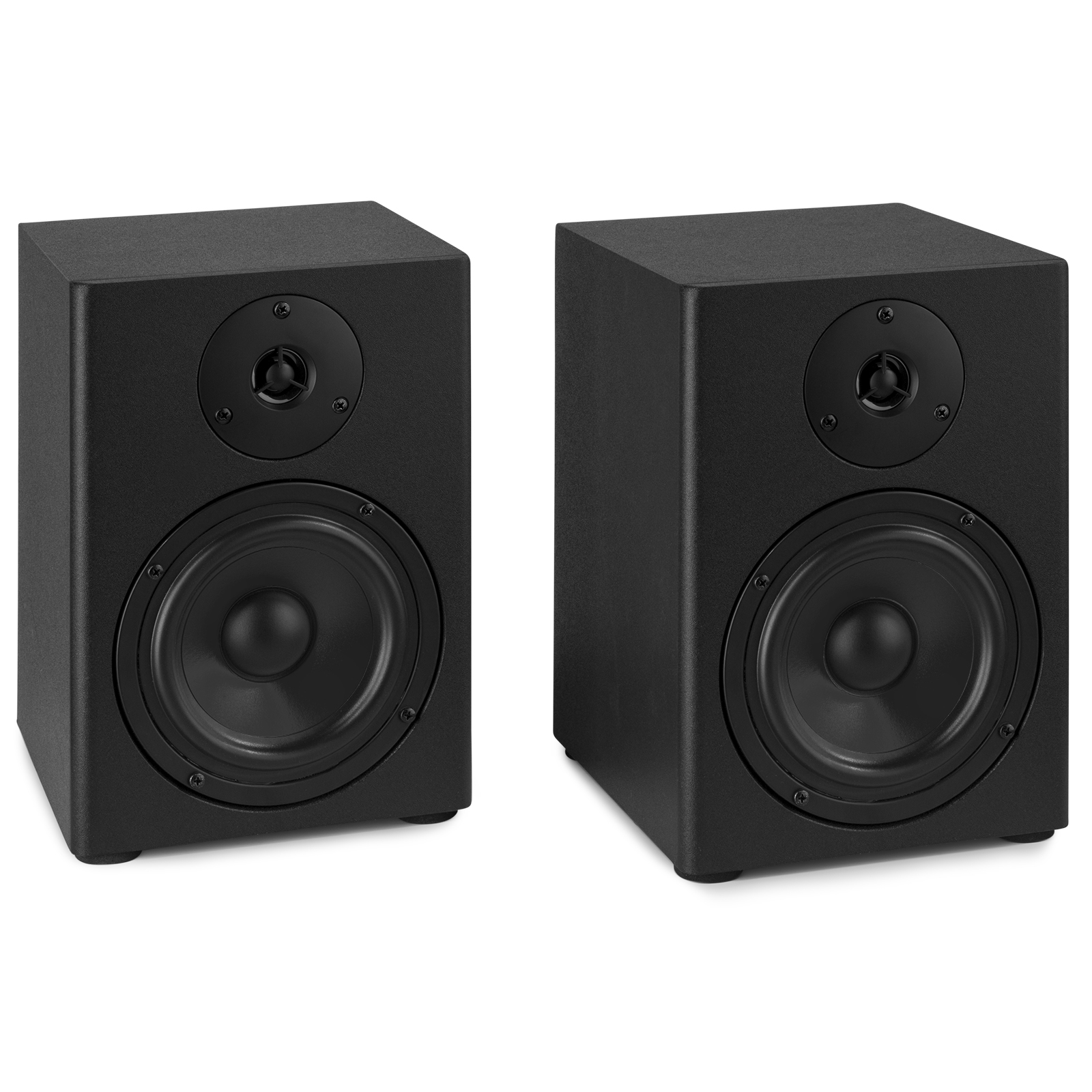 These SM Active Studio Monitors are professional quality studio monitors and also suitable for multimedia use. These speakers are designed to produce a flat frequency response for (home) studio recording, mixing, and mastering duties. Volume, bass and treble controls are located on the back panel for adjustments based on your personal preferences. The SM-series features analog amplifiers that are built into the left speaker, while the right speaker is passive so setup is simple. Just plug the left speaker into AC power and connect the included speaker wire from left to right. These Vonyx SM Active Studio Monitor Speakers creates a new performance level in affordable studio monitors.