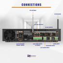 - PA amplifier with 4 zones, independently selectable and volume controlled