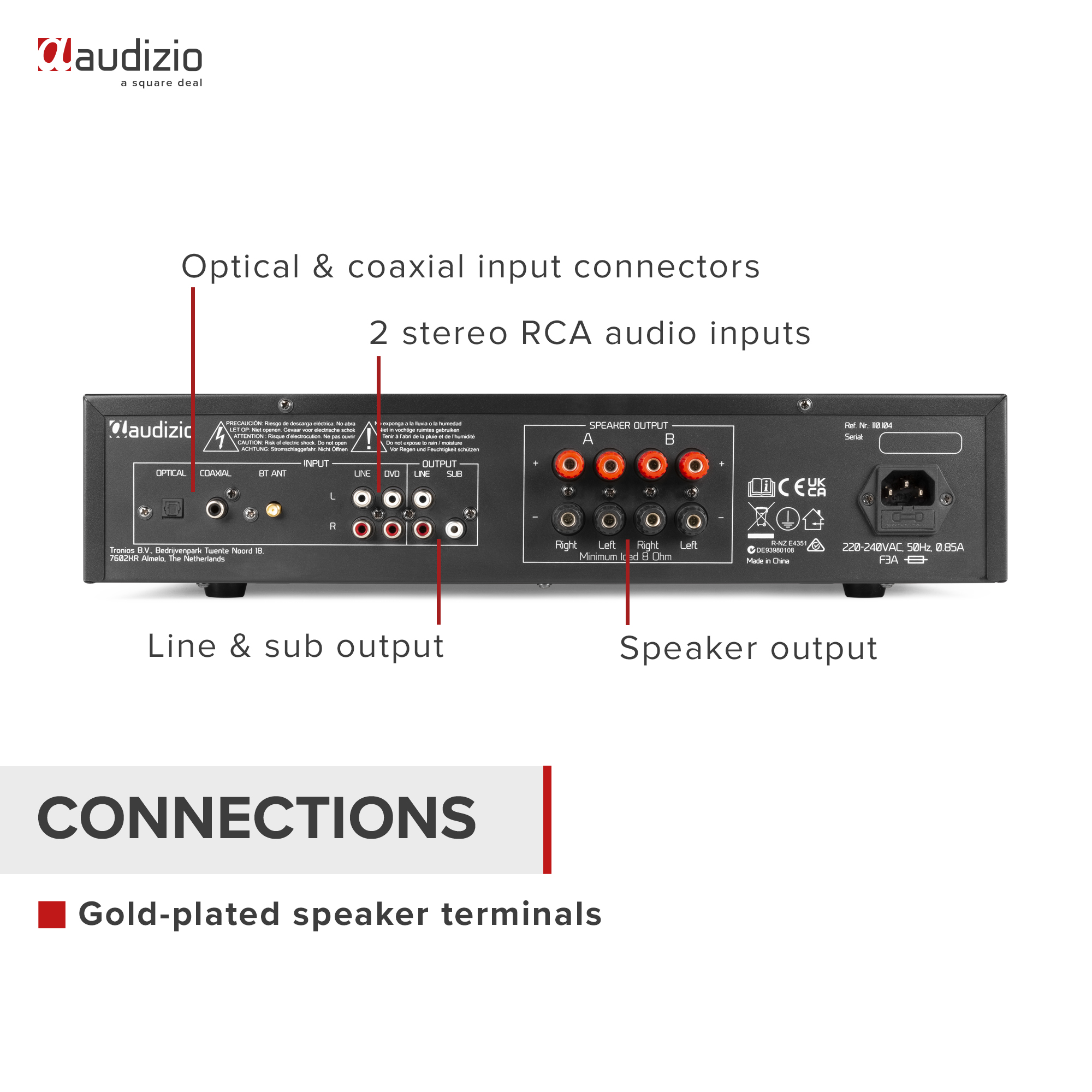 - Gold-plated speaker terminals