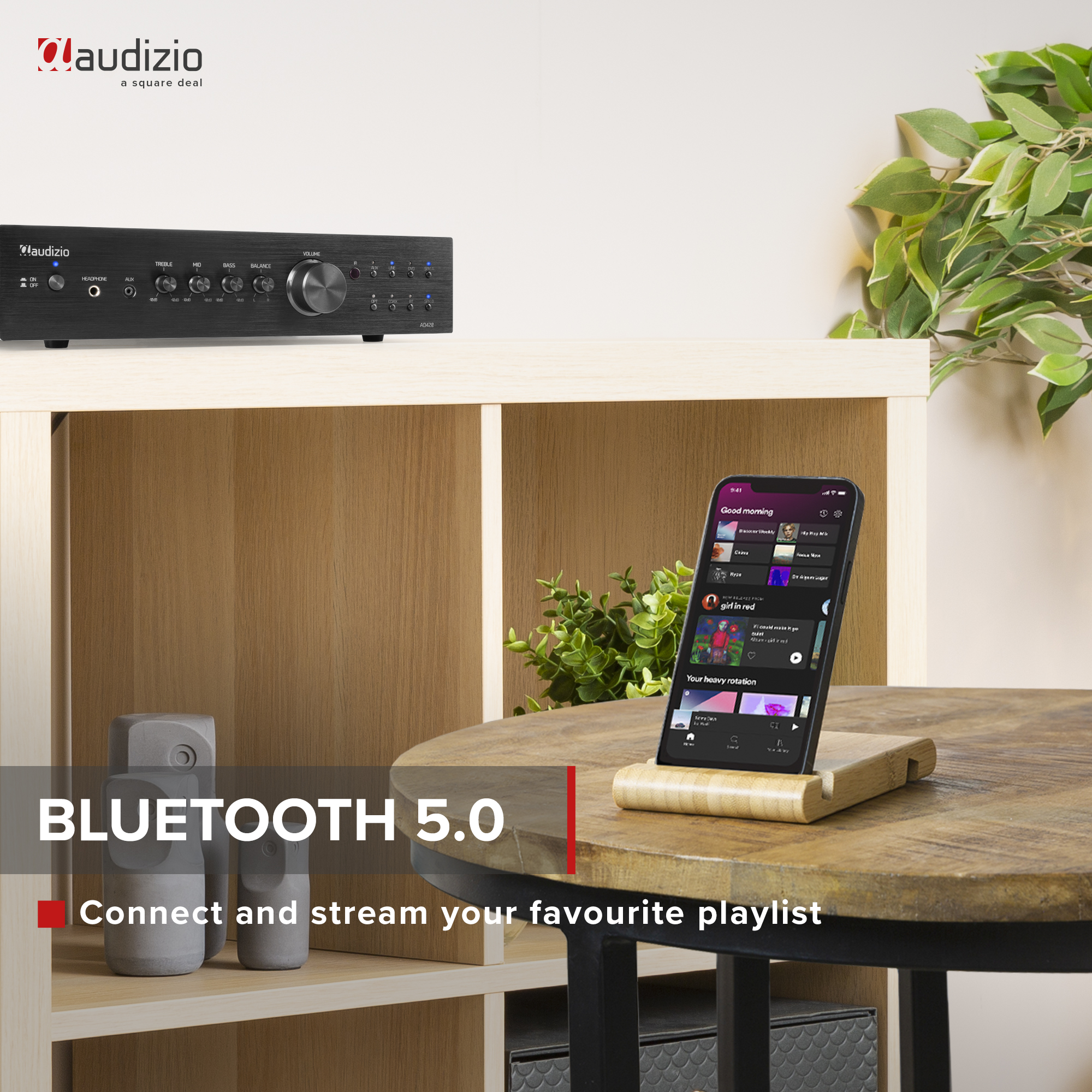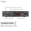 The Audizio AD series is a series of versatile HiFi amplifiers with great functionality and excellent sound. Even at higher volume levels these amplifiers provides a high sound pressure. The amplifier's elegant design and extensive connectivity options make it perfect for home use. The front AUX input allows connection to portable audio devices such as smartphone, MP3 and CD players. At the back you'll find three RCA line inputs for external music sources like Mp3/CD player and other devices. The AD amplifiers are also equipped with advanced wireless BT technology and works with all latest devices including smartphones, tablets and laptops. Enjoy the exceptional sound quality that combines high power with clear, musical details.