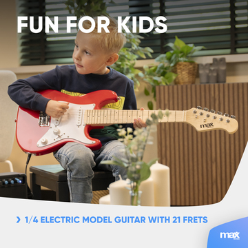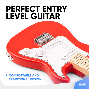 The Gigkit Junior Electric Guitar Pack is ideal for beginning players and provides a comfortable playing feel. This beginners pack offers a time tested traditional electric guitar design. Coupled with a classic Max amplifier, this set-up is designed for lovely clean guitar tones and even some crunchy classic rock material. This is great value for money entry level guitar package for young starters.