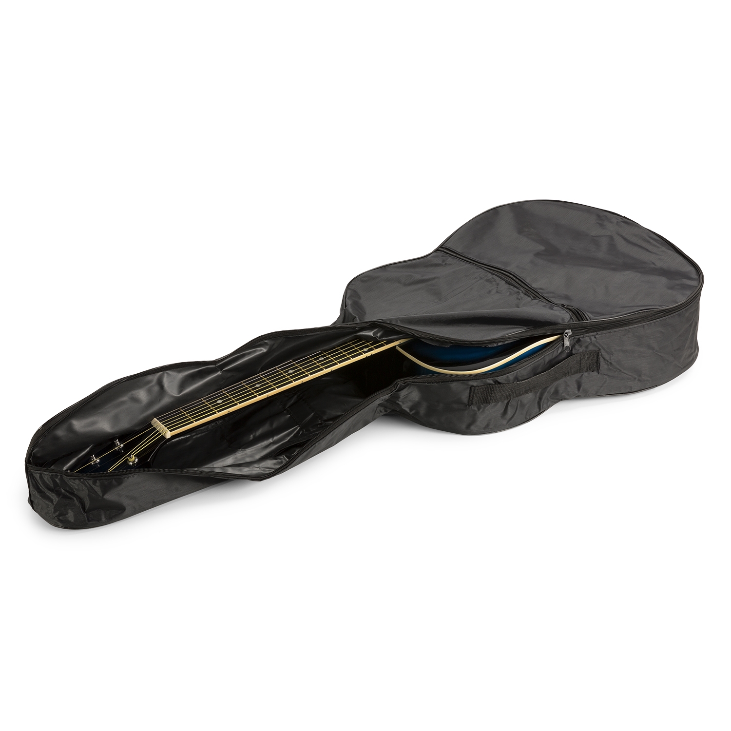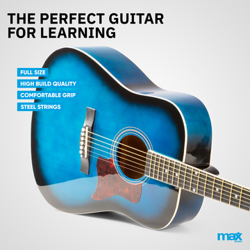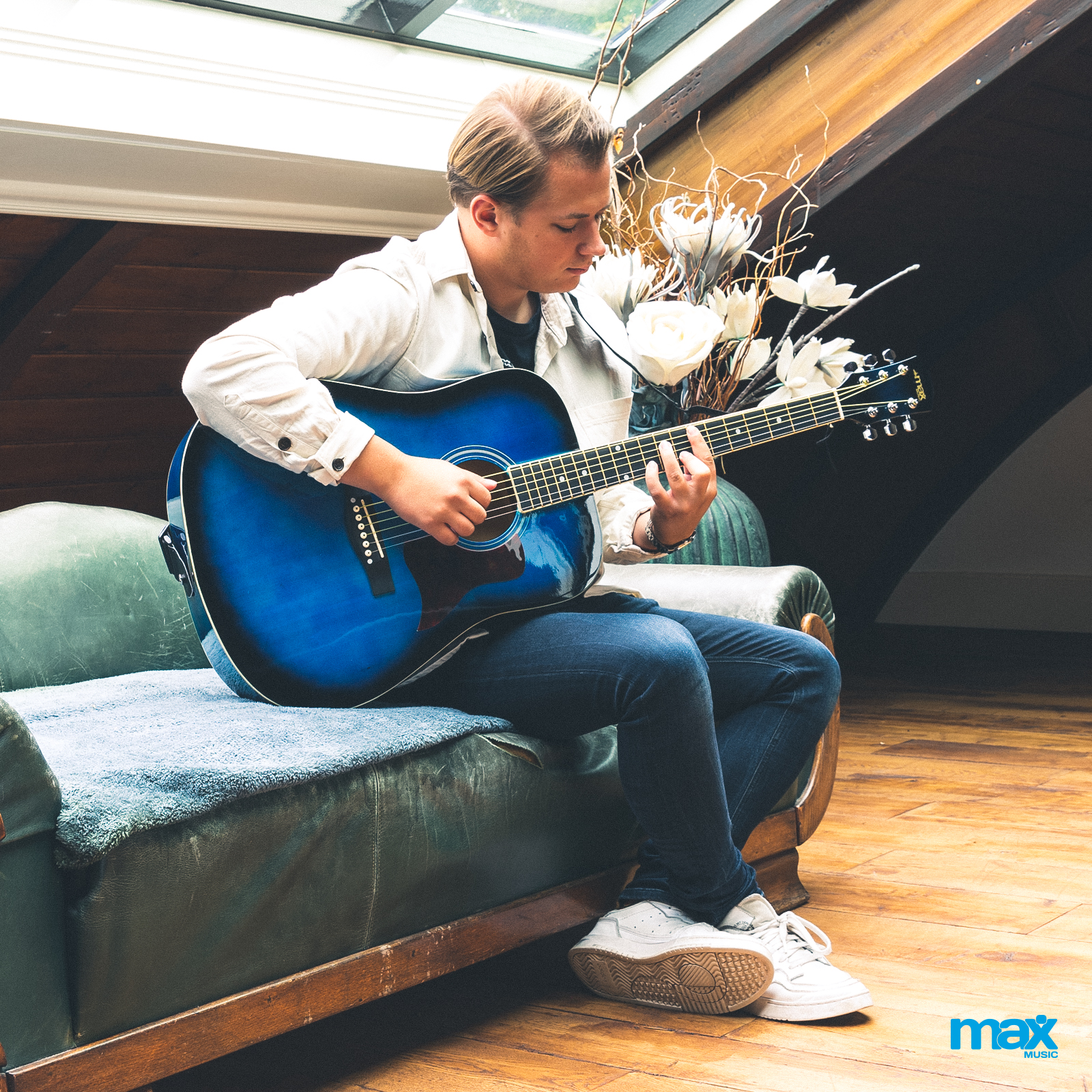 This acoustic steel-string guitar is ideal for anyone that wants to start playing the guitar, or wants to get back into it. It is a full size guitar with steel strings. The body is designed in a classic dreadnought style, which ensures a tremendous sound combined with a western look. This model is suitable for all ages from age 10 onwards. With all accessories included, you're ready to start playing instantly.