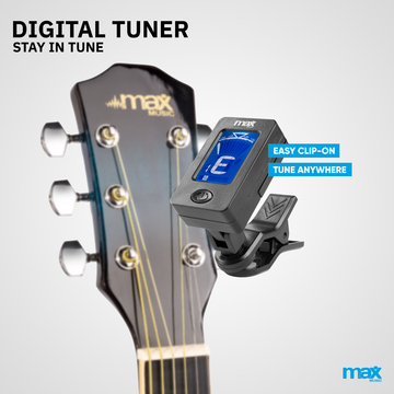 You probably can't tune a guitar by ear yet, so the included digital tuner comes in handy.