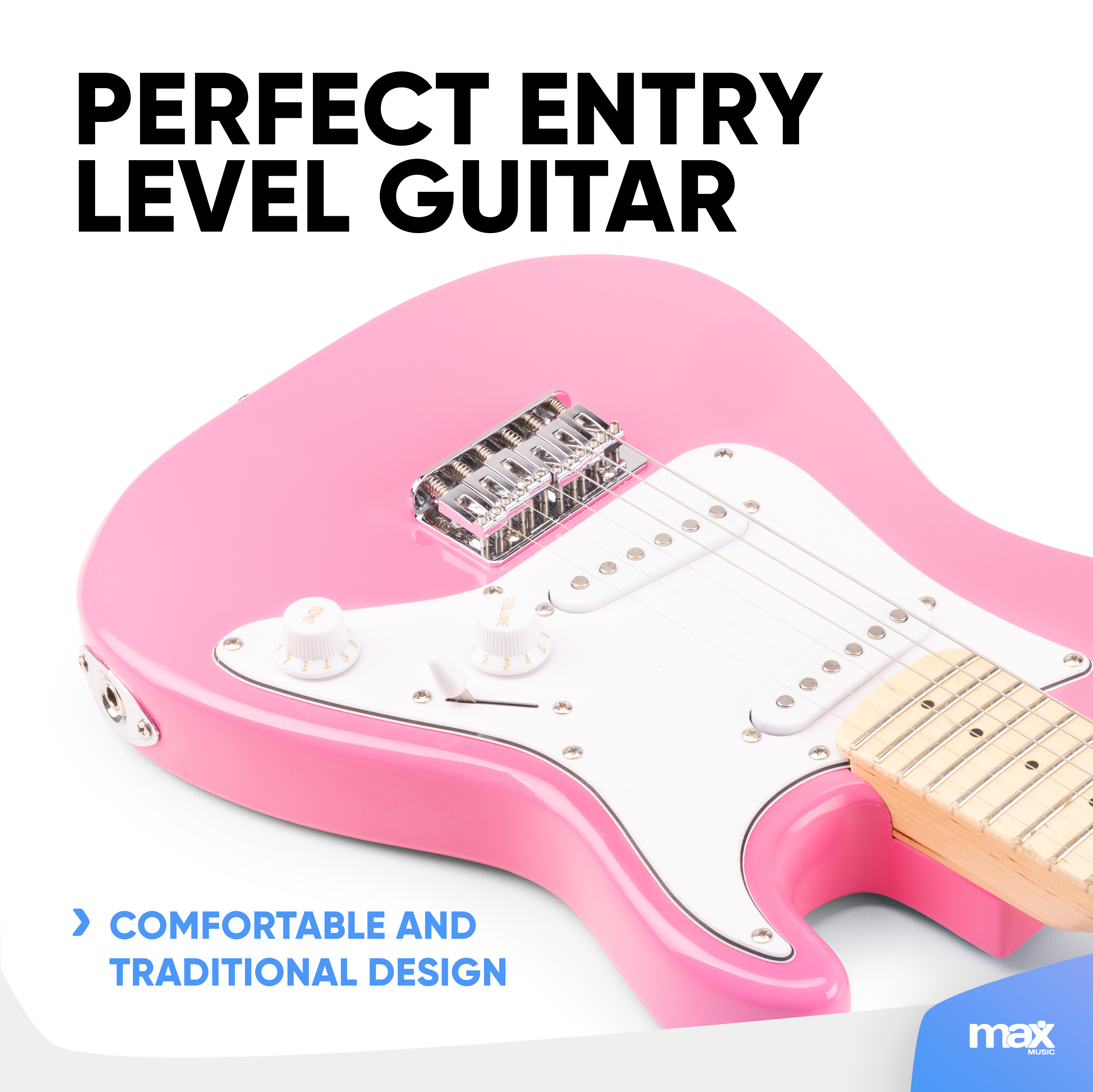 The Gigkit Junior Electric Guitar Pack is ideal for beginning players and provides a comfortable playing feel. This beginners pack offers a time tested traditional electric guitar design. Coupled with a classic Max amplifier, this set-up is designed for lovely clean guitar tones and even some crunchy classic rock material. This is great value for money entry level guitar package for young starters.