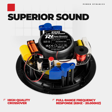 The KVCS series takes in-ceiling audio to the next level. Designed as a premium upgrade to the popular NCSS series, the KVCS speakers offer significantly improved sound quality, superior components, and a refined acoustic experience for the true audio enthusiast. At the heart of the KVCS series is a yellow woven cone woofer, delivering tighter, deeper bass and greater clarity across the midrange. The tiltable 25mm silk dome tweeter allows precise tuning of high frequencies, ensuring optimal sound dispersion in any room layout. Together with a high-end crossover network, this 2-way speaker achieves a smooth, detailed and balanced HiFi sound that outperforms standard ceiling speaker solutions. Finished with a slimline magnetic grille that blends seamlessly into modern interiors, the KVCS series is perfect for those who want top-level audio quality.