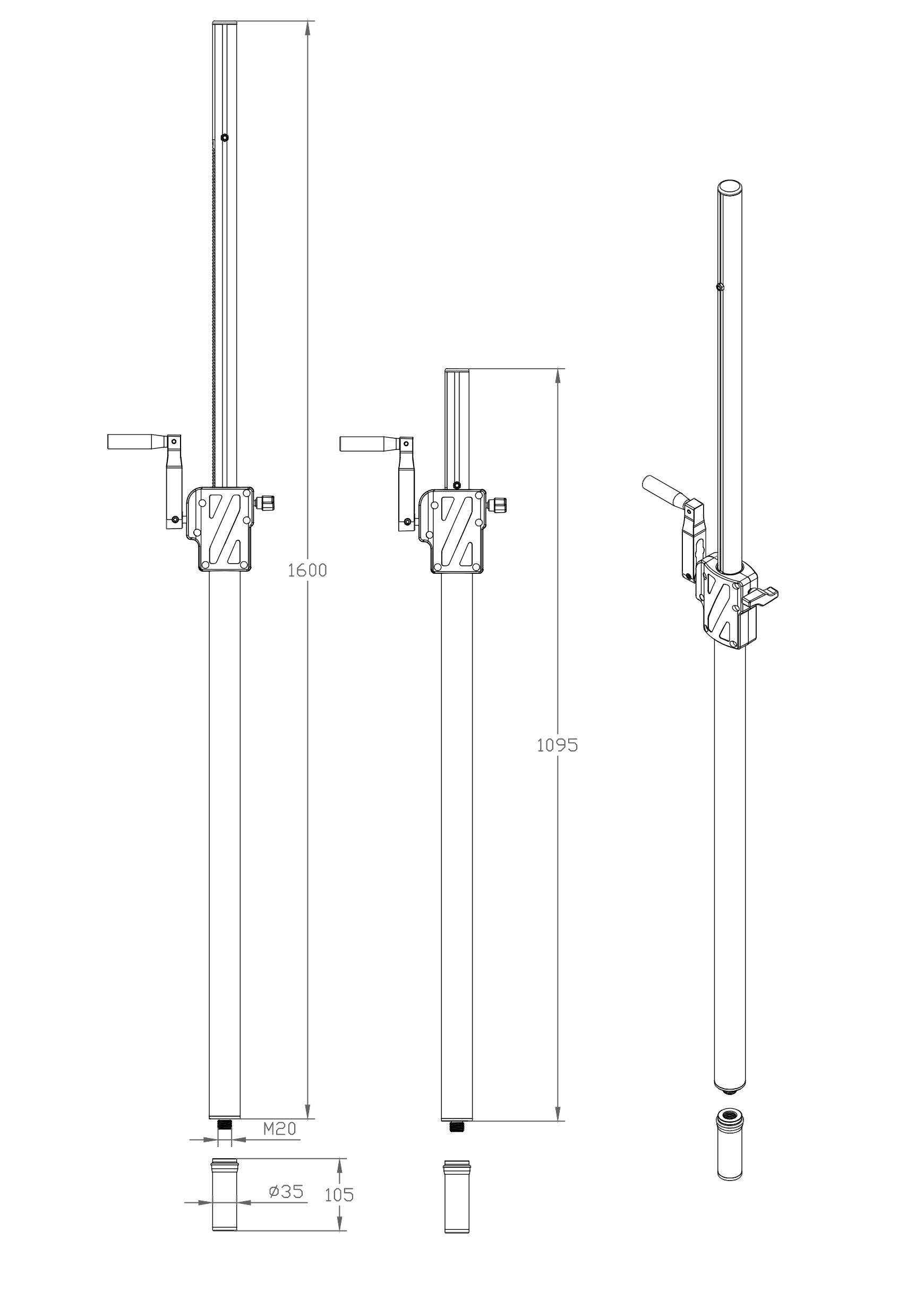 - Adjustable height 1095 - 1600mm