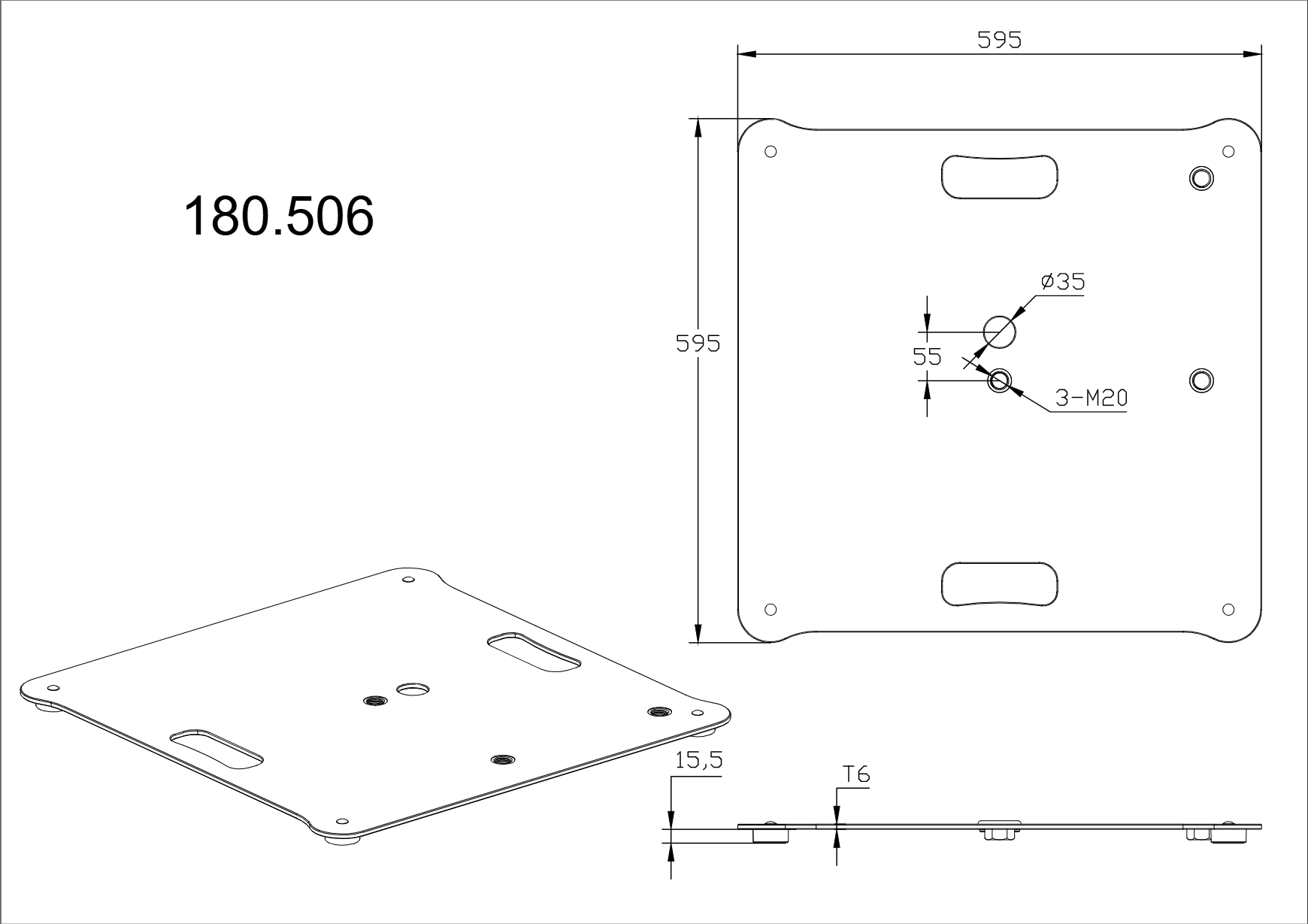 This MPS universal square baseplate can be used for all common distance tubes and tube combinations with 3 M20 threaded bolts. This robust metal baseplate is equipped with four sturdy rubber feet, ensuring a stable foundation. Each plate has two grips, which makes them easier to handle.