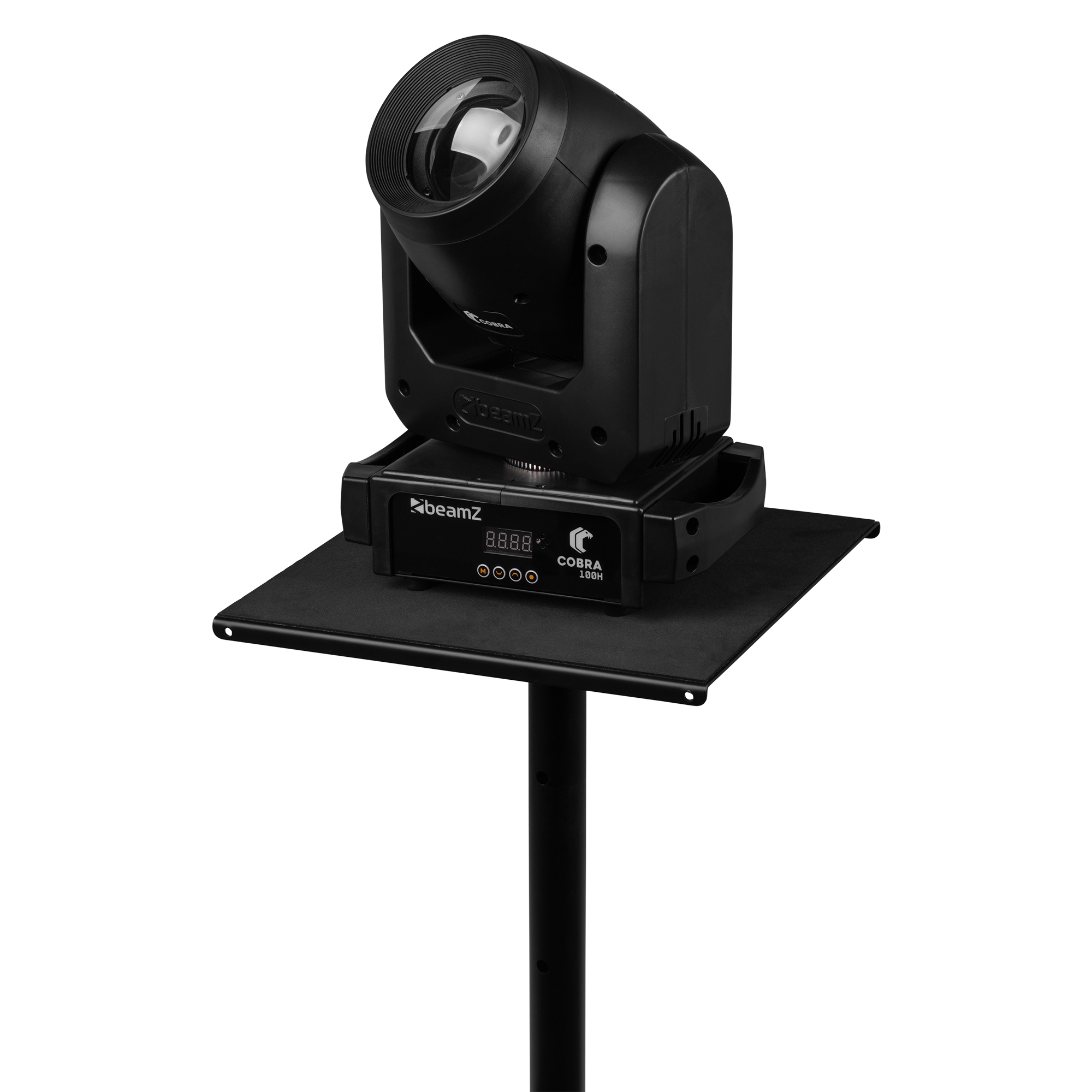 The MPS-S30S is a durable metal shelf designed to be mounted on speaker stands, lighting stands, or poles using an M10 thread. It provides a solid and stable platform for placing laptops, controllers, projectors, moving heads or other equipment. Constructed from strong steel and finished in a sleek black powder coat, the MPS-S30S combines durability with a professional appearance. The integrated cable management opening allows for tidy and organized cable routing, helping to keep your setup clean and efficient.