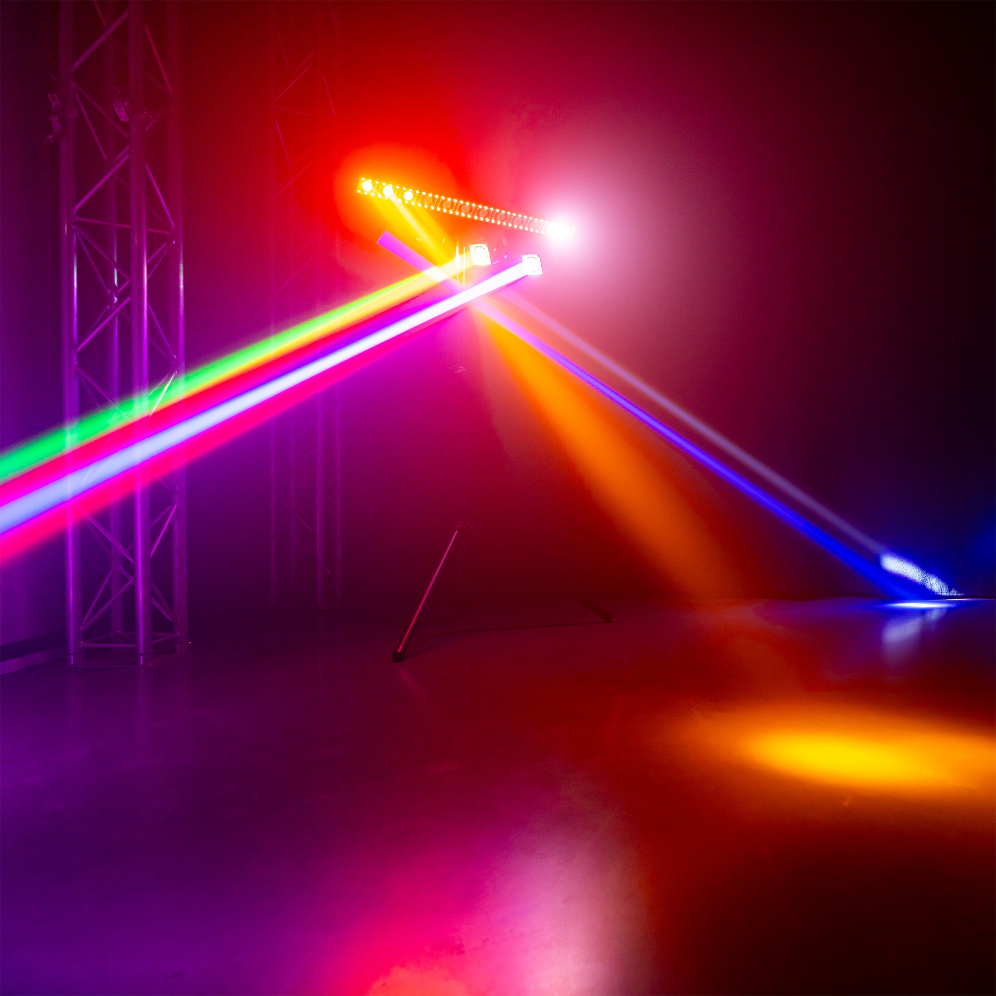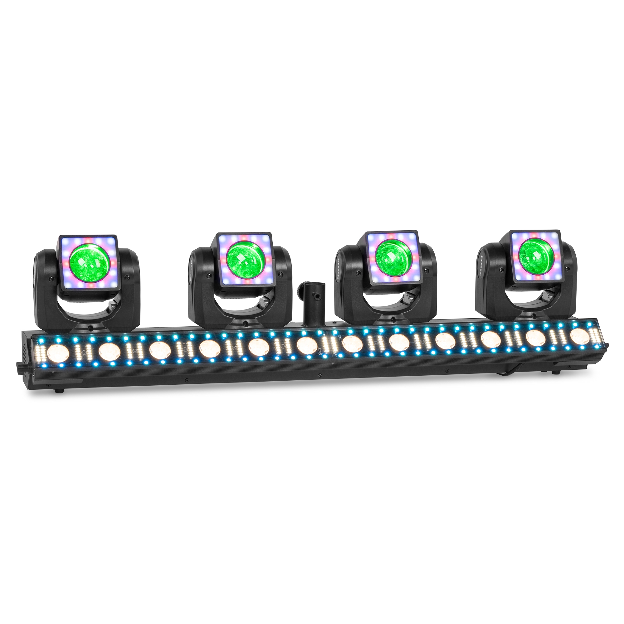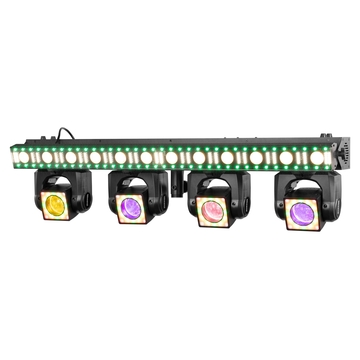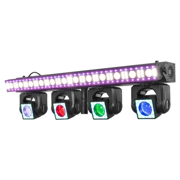 - 4x 40W Moving Heads 4-in-1 LEDs