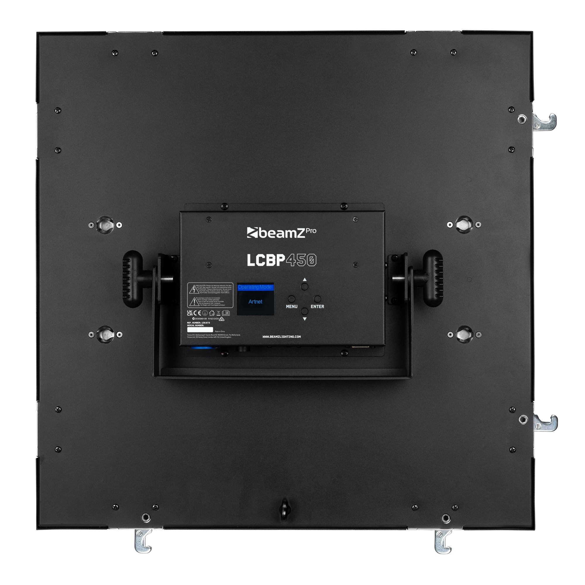 The LCBP450 is an impressive hybrid LED panel featuring 25 powerful 10W RGBW LEDs behind precision lenses and 200x RGB SMD LEDs for a stunning backlight effect. With customizable patterns and dynamic chase effects, this fixture creates a visual spectacle for any event. In stand-alone mode, you can choose from pre-programmed shows that run automatically or react to sound. Additionally, the RGB mode allows you to create your own colour combinations for background lighting. The built-in power connector output makes it easy to link multiple units together in series, simplifying setup and optimizing cable management.
