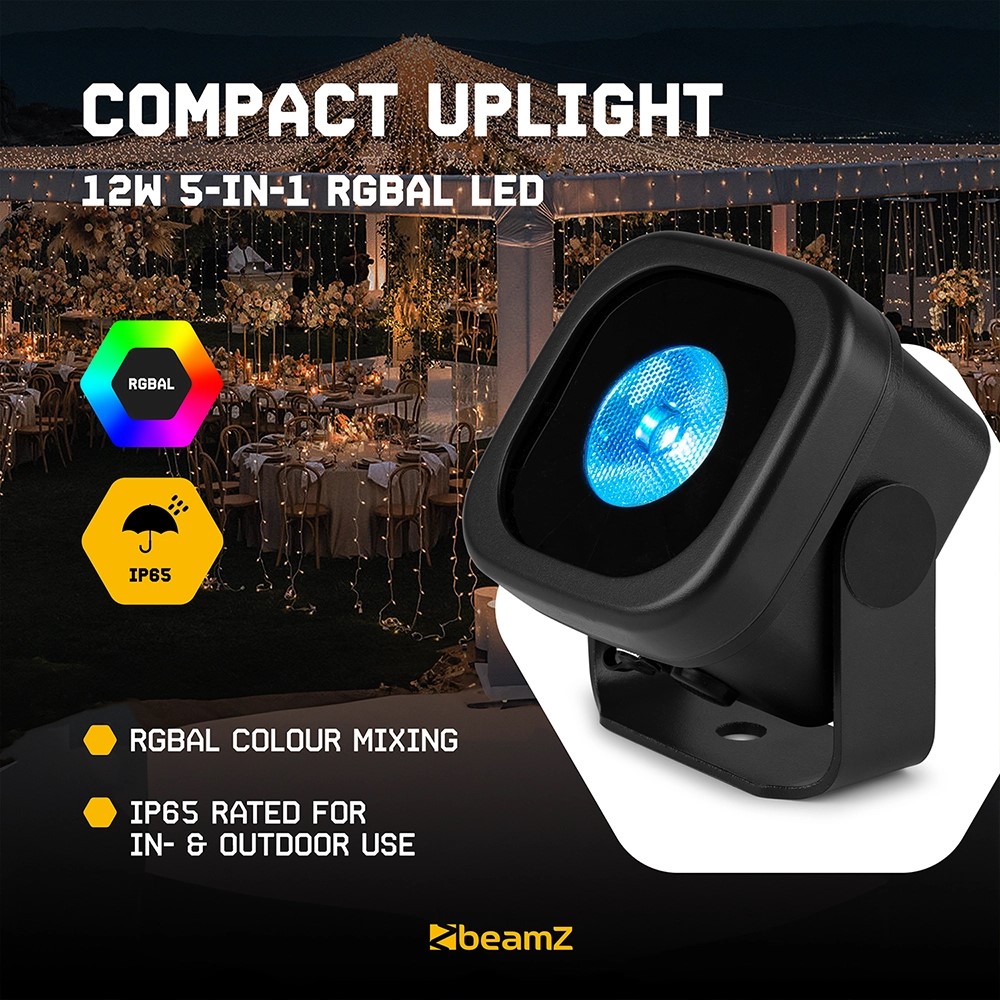 Dynamic Colour OutputThe 12W RGBAL 5-in-1 LED in each unit offers rich, customisable hues including an extra Lime channel for new tones. Electronic dimming and a selectable strobe effect enable a vast range of looks from subtle ambiance to dramatic visuals.