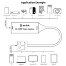 - Captures HDMI video and audio signals and sends them to a PC, laptop or smart device for preview and storage