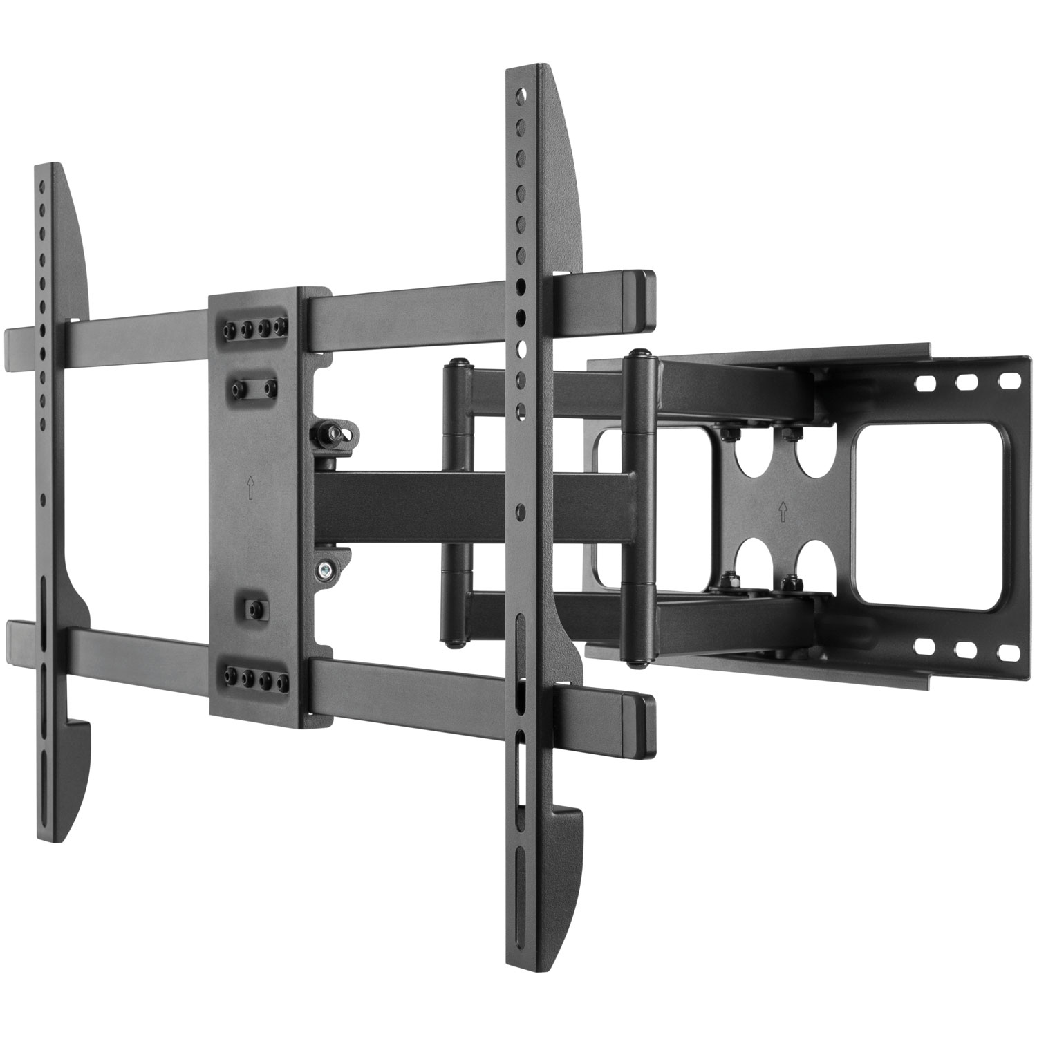 Heavy-duty TV wall bracket, suitable for larger LCD/LED screens from 37" to 80" and up to 60kg in weight. Its full motion double arm design provides maximum flexibility with extend, tilt and swivel capabilities providing easy viewing from any seat in a room. The easy to assemble, low profile design will save you wall space while the included hook and loop tapes will keep your cables clean and tidy.