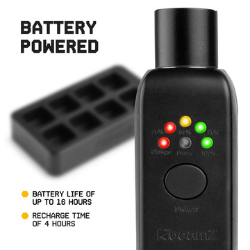 The WD1F receivers and the WD1M transmitter operate via the reliable EazyLink protocol. This provides a stable wireless connection of up to 15 meters indoors and up to 25 meters in open spaces. Perfect for halls and stages. Thanks to the built-in lithium battery in both the transmitter and the receivers, you do not need an external power supply. The LED indicators clearly show the battery status, so you will never be caught off guard before or during a performance or event.